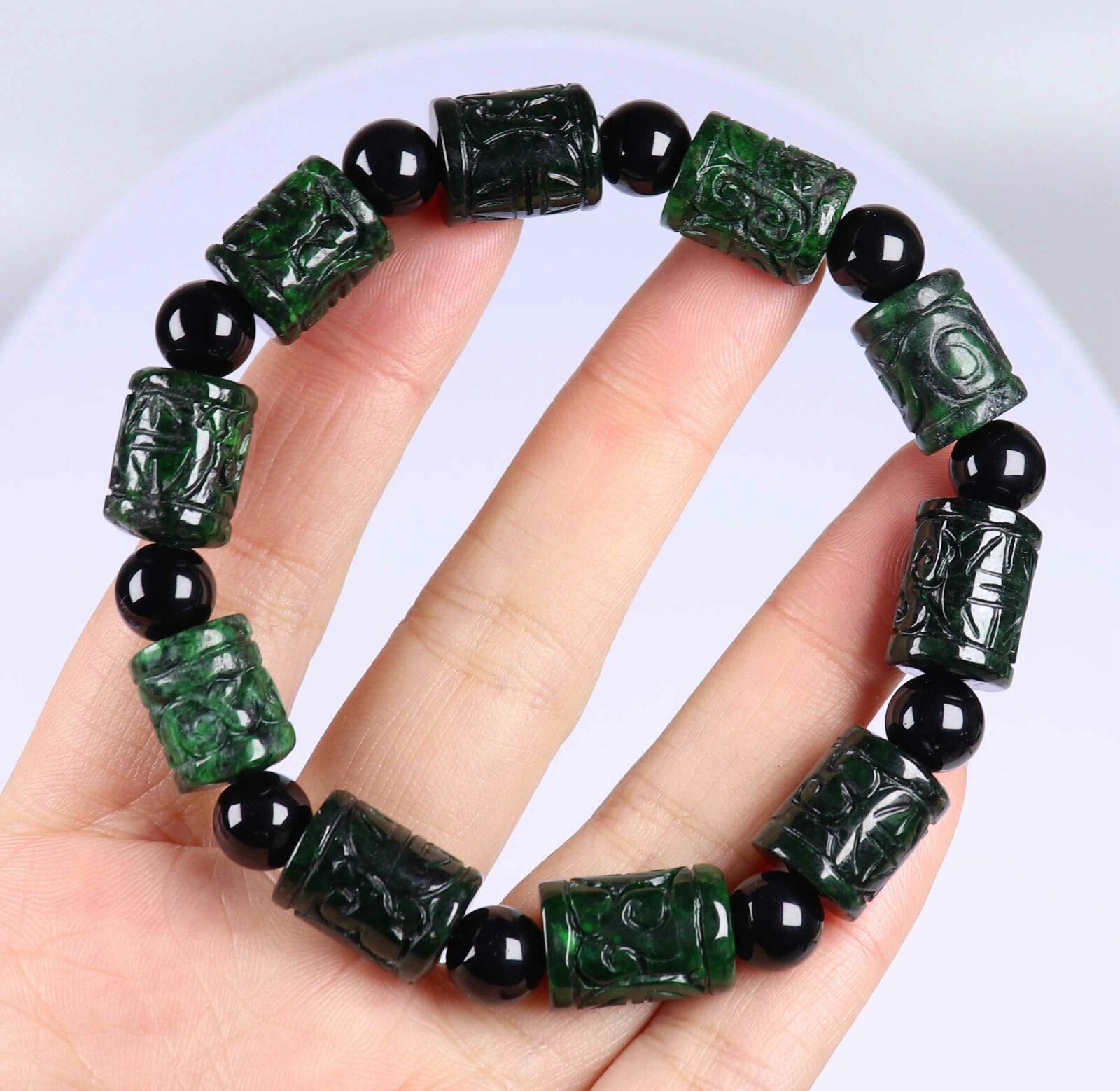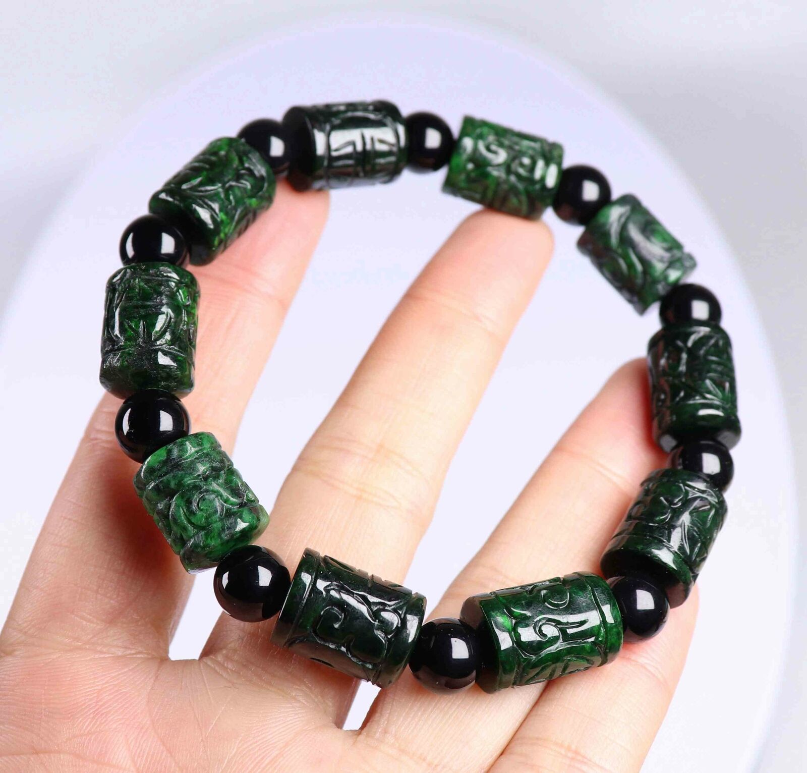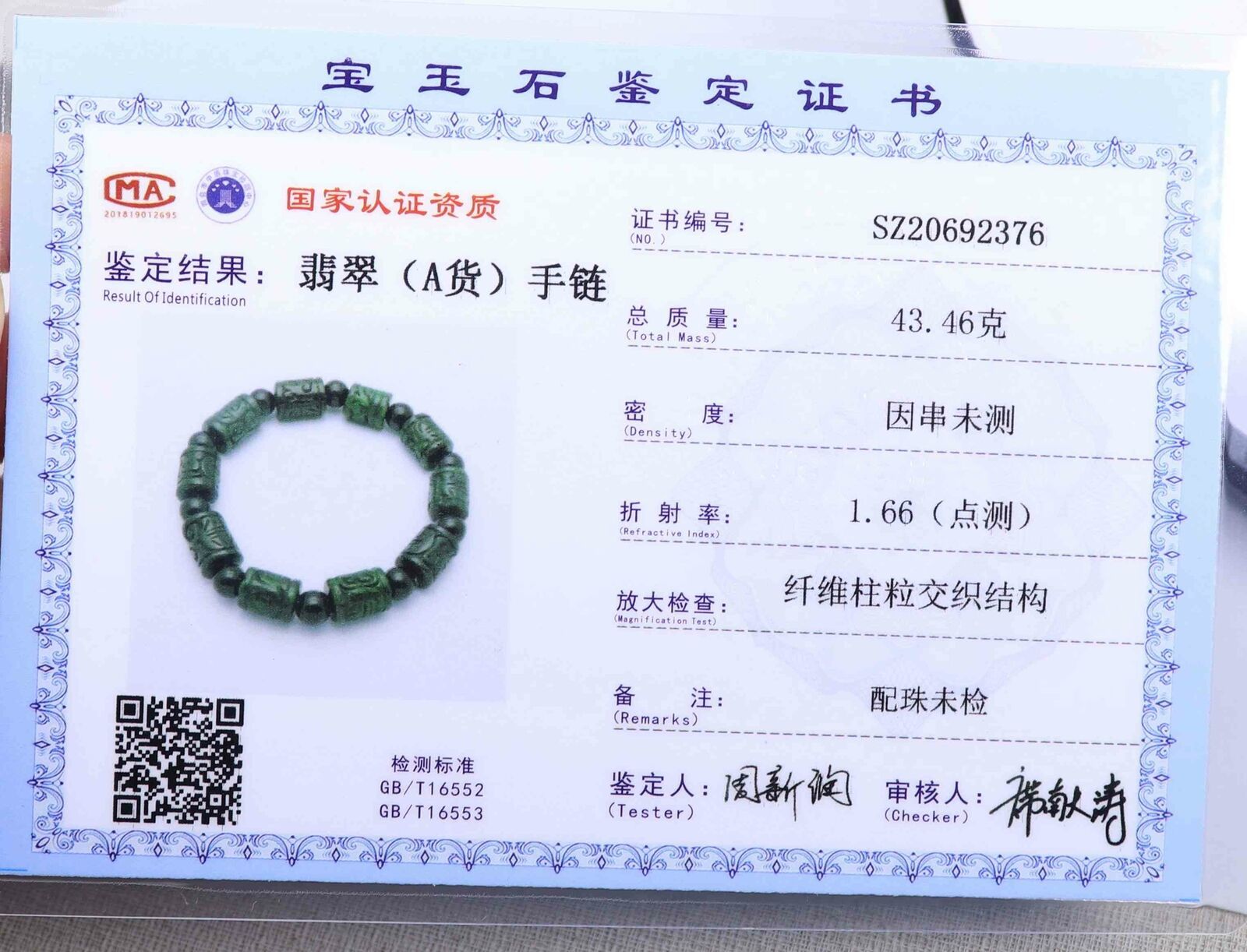 Certified Green Natural A Jade Jadeite Moire 13.7*10 mm Bead Bracelet ?? 230212
