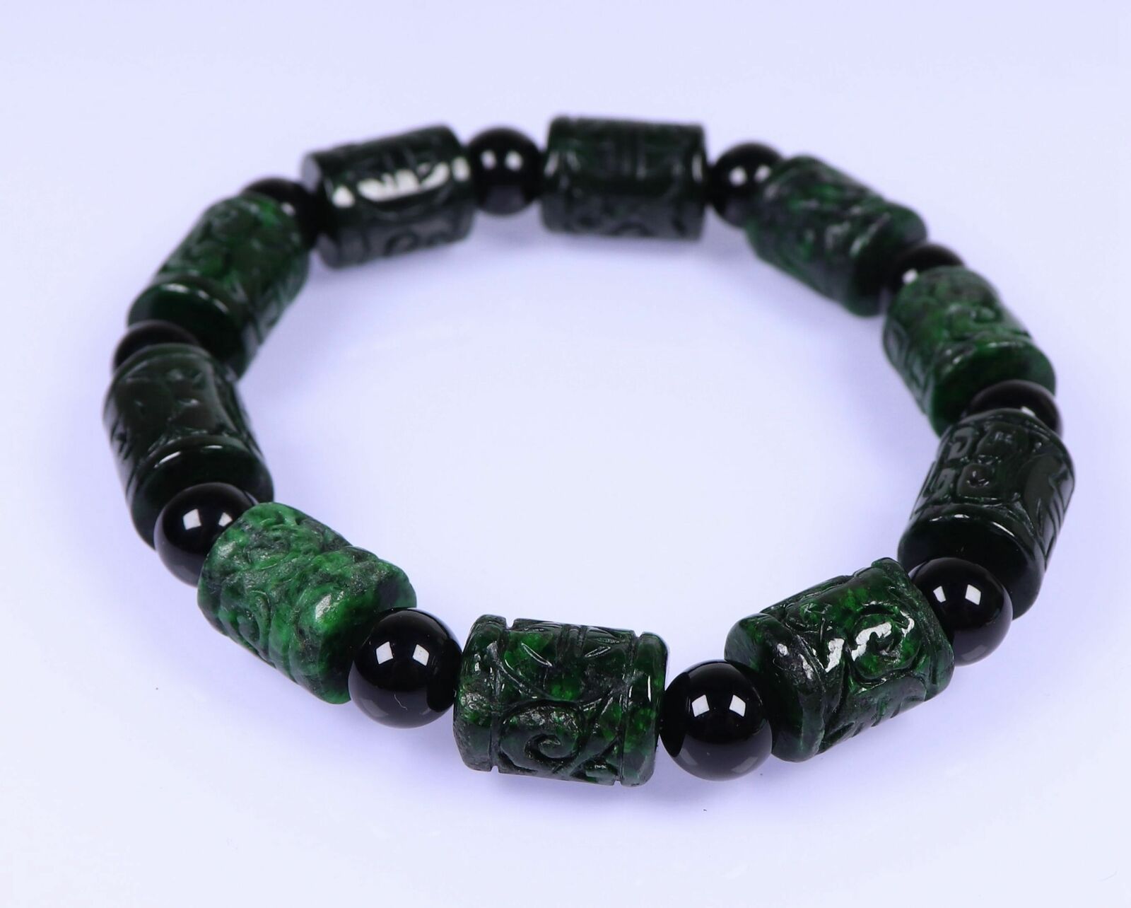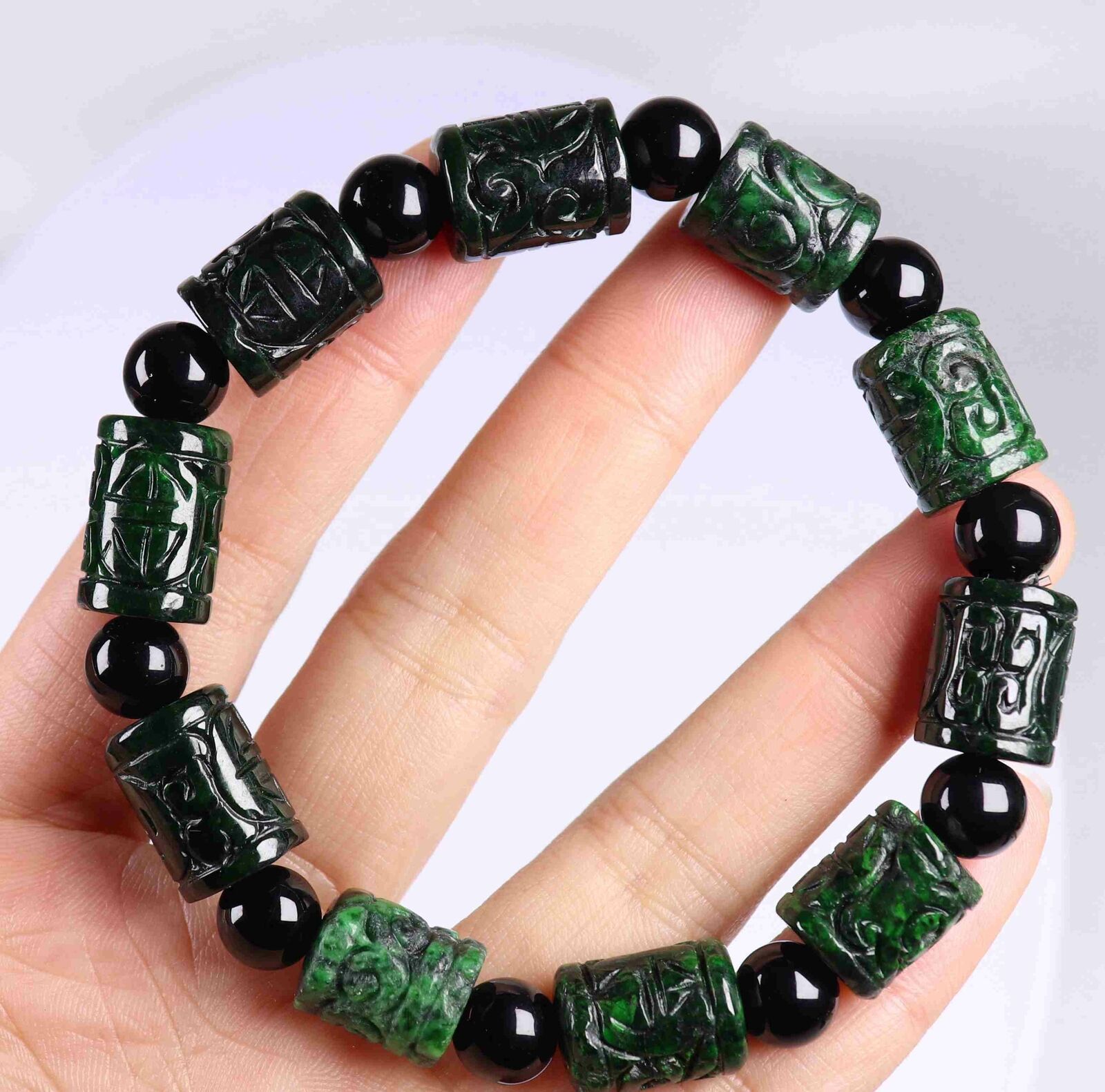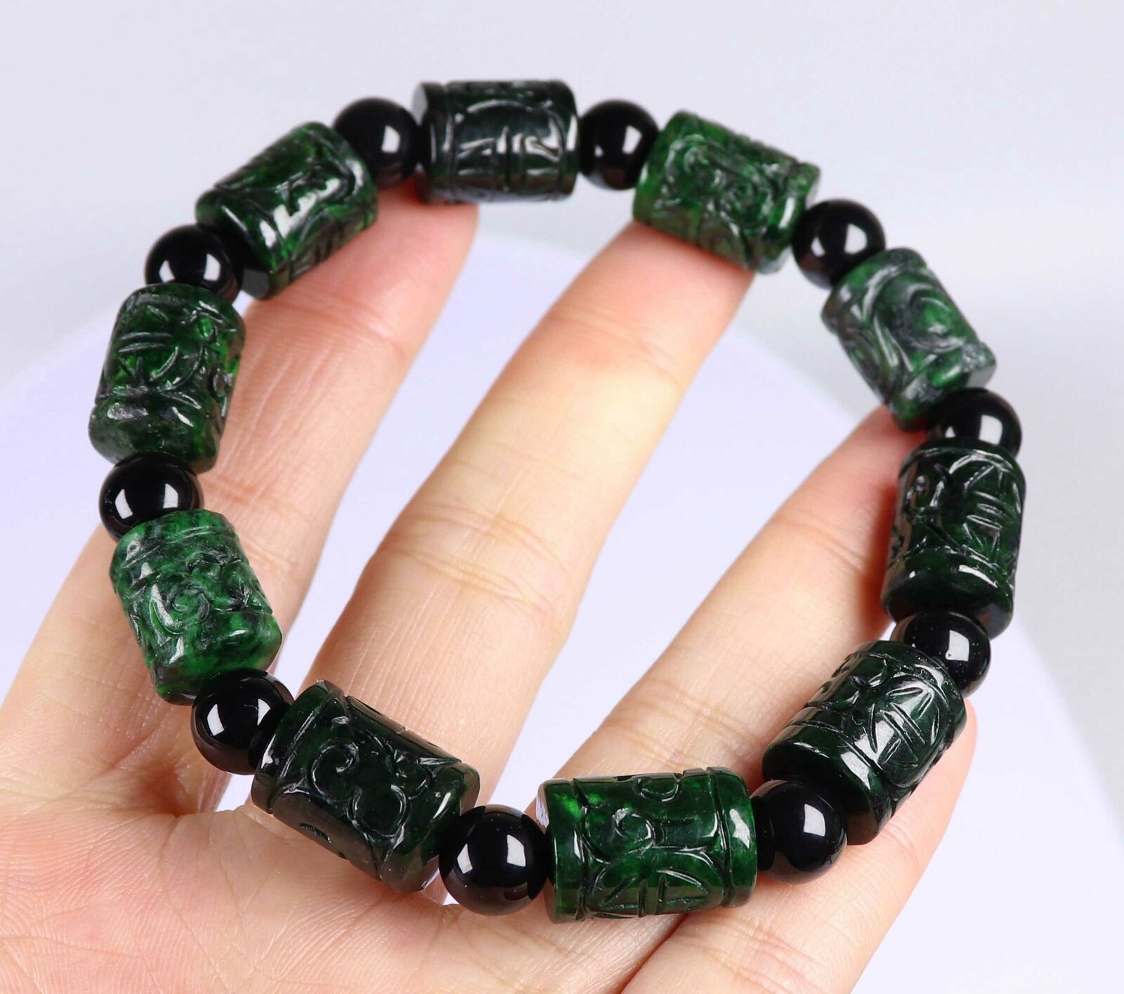 Certified Green Natural A Jade Jadeite Moire 13.7*10 mm Bead Bracelet ?? 230212