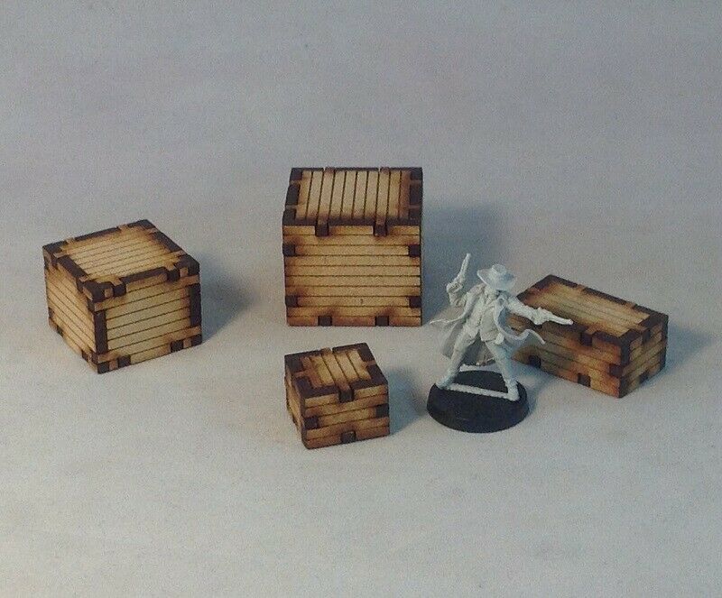 Crates Set c 28mm Terrain Old West Tombstone Desperado Legends Knuckleduster MDF