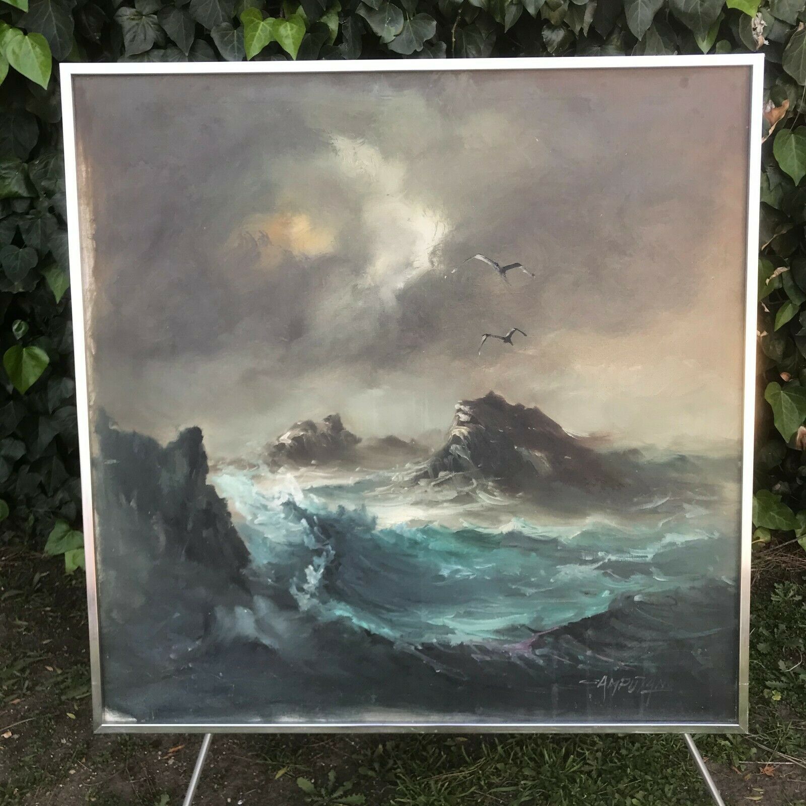 JOSE LUIS CAMPUZANO Original 1950s HUGE SEASCAPE MODERN IMPRESSIONIST Oil Canvas