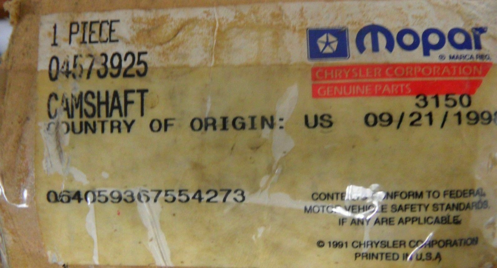 This sale transaction is for a Mopar OEM 4573923 Left Engine Camshaft Fits Chrysler Dodge Eagle Plymouth 1997 (Please independently verify vehicle compatibility)