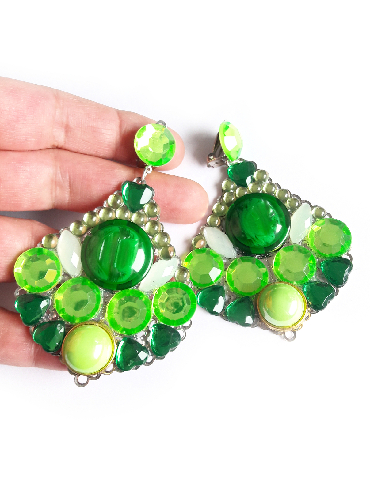 Oversized Earrings, Statement Earrings, Green Earrings, Neon Green Earrings, Big Summer Earrings, Colorful Earrings, Large Earrings, Large Clips, Clip on Earrings, Statement Jewelry, Statement Clips,