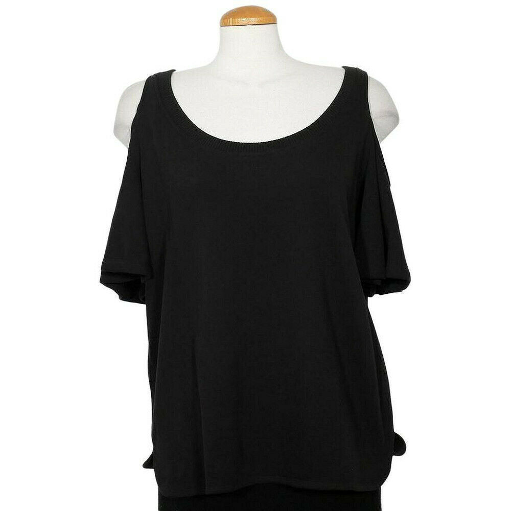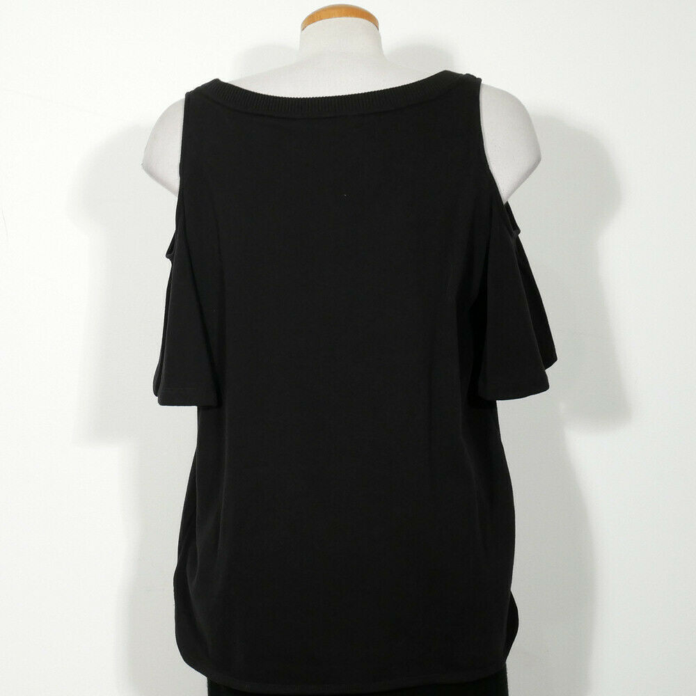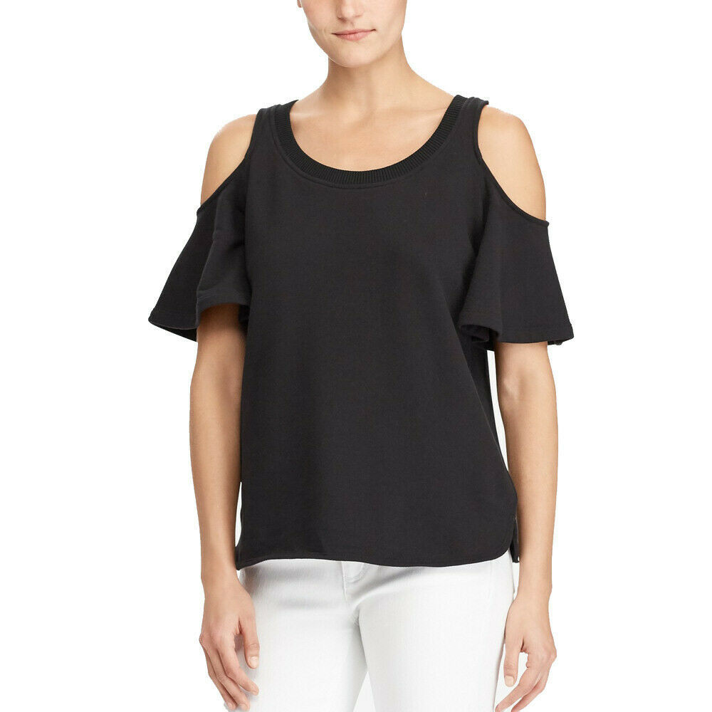 RALPH LAUREN Black Cotton Blend French Terry Cold Shoulder Top L