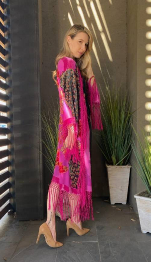 Rich Fushia Pink Mucha Peacock Vintage Style Velvet ArtDeco Bohemian DeLuxe Dust