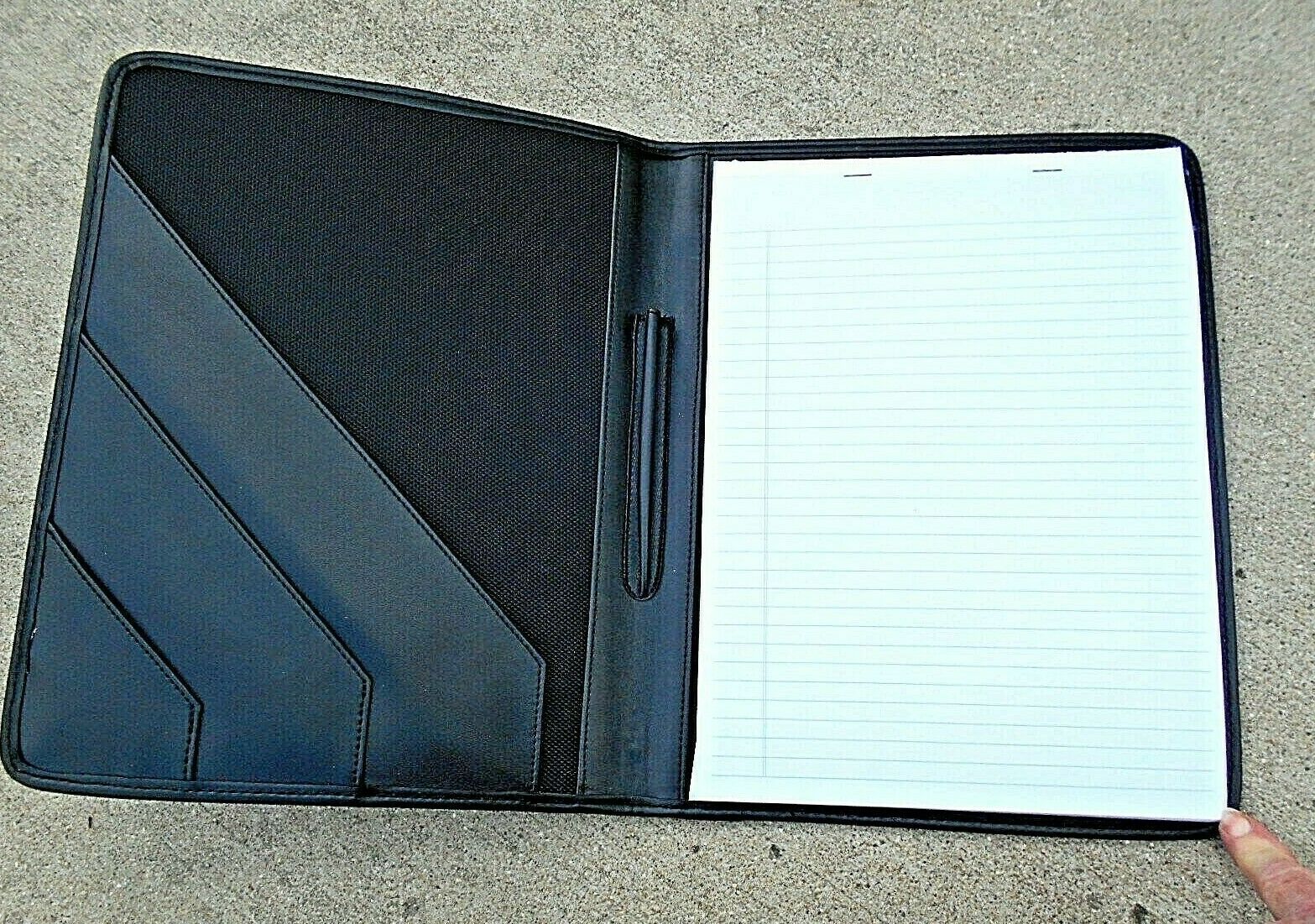 * In the back of the case is a binder with a 8-1/2"x11" lined pad that is strapped in, the case is 5-1/2" deep and has a strap to hold a laptop or other material in place inside
