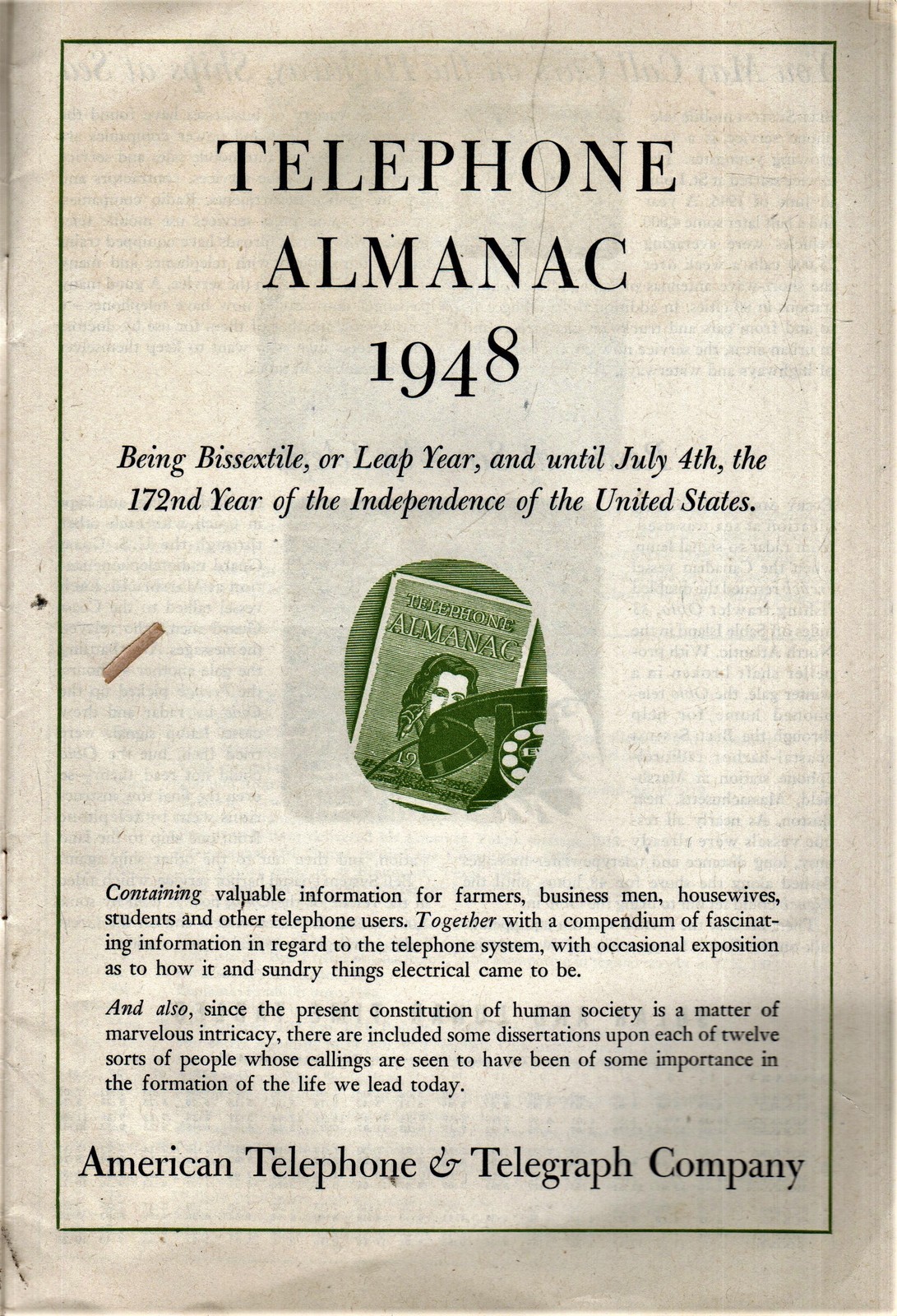Vintage 1948 TELEPHONE ALMANAC Bell System American Telephone Telegraph Co. RARE