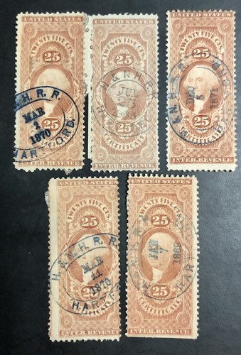 R127 $5 Second Issue, Blue & Black, George Washington, USA Revenue Stamp, 1871
