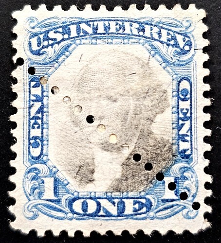 R117 70c Second Issue, Blue & Black, George Washington, U.S. Revenue Stamp, 1871