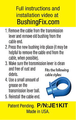 The kit replaces the bushing on the interior end of the cable located at the base of the gear shifter.
