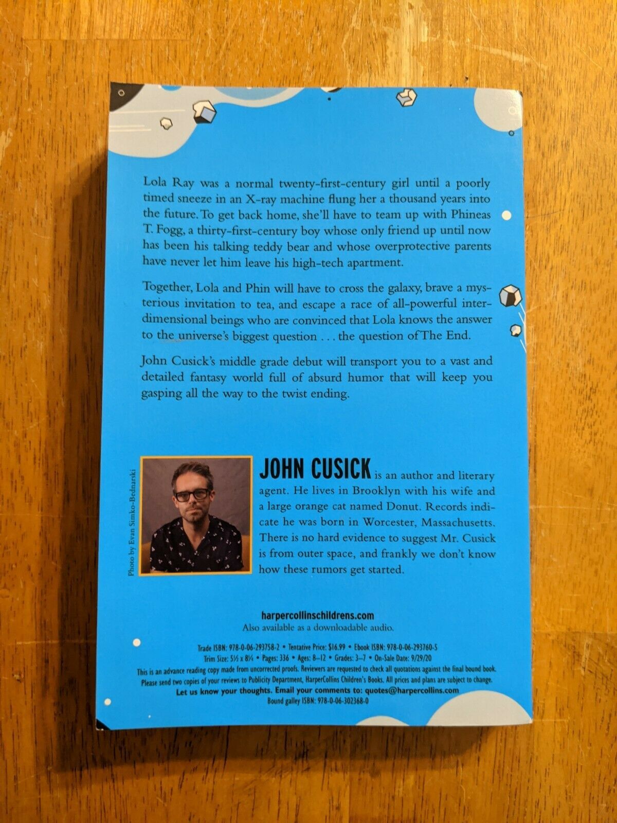 Together, Lola and Phin will have to cross the galaxy, brave a mysterious invitation to tea, and escape a race of all-powerful interdimensional beings who are convinced that Lola knows the answer to the universeโs biggest question . . . the question of The End.