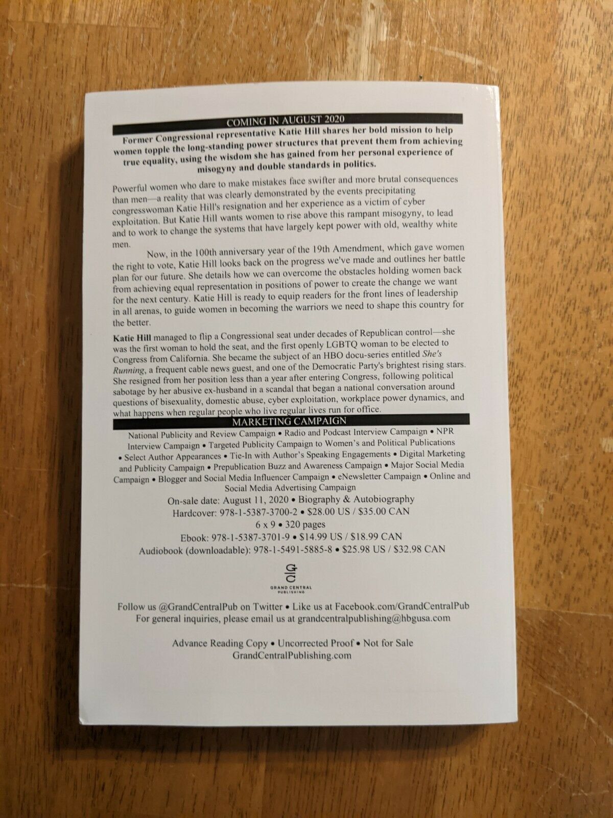 Katie Hill wasn't yet thirty when she embarked on her run for Congress. By thirty-one, she had become not only a member of Congress but a member of congressional leadership. Soon, she was the subject of an HBO docuseries entitled She's Running, a frequent and ratings-generating cable news guest, and one of the Democratic Party's brightest rising stars. Her campaign attracted the support of dozens of celebrities, including Kristen Bell, Chelsea Handler, Alyssa Milano, and Chris Evans, and she managed to flip a Congressional seat under decades of Republican control. She was the first woman to hold the seat, and the first openly LGBTQ woman to be elected to Congress from California. She resigned from her position less than a year after entering Congress, following a scandal that began a national conversation around questions of bisexuality, domestic abuse, cyber exploitation, workplace power dynamics, and what happens when regular people who live regular lives run for office.