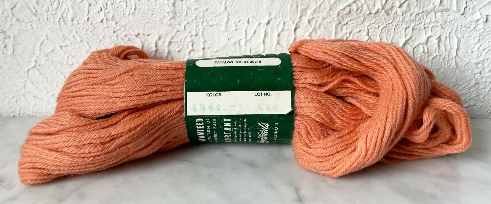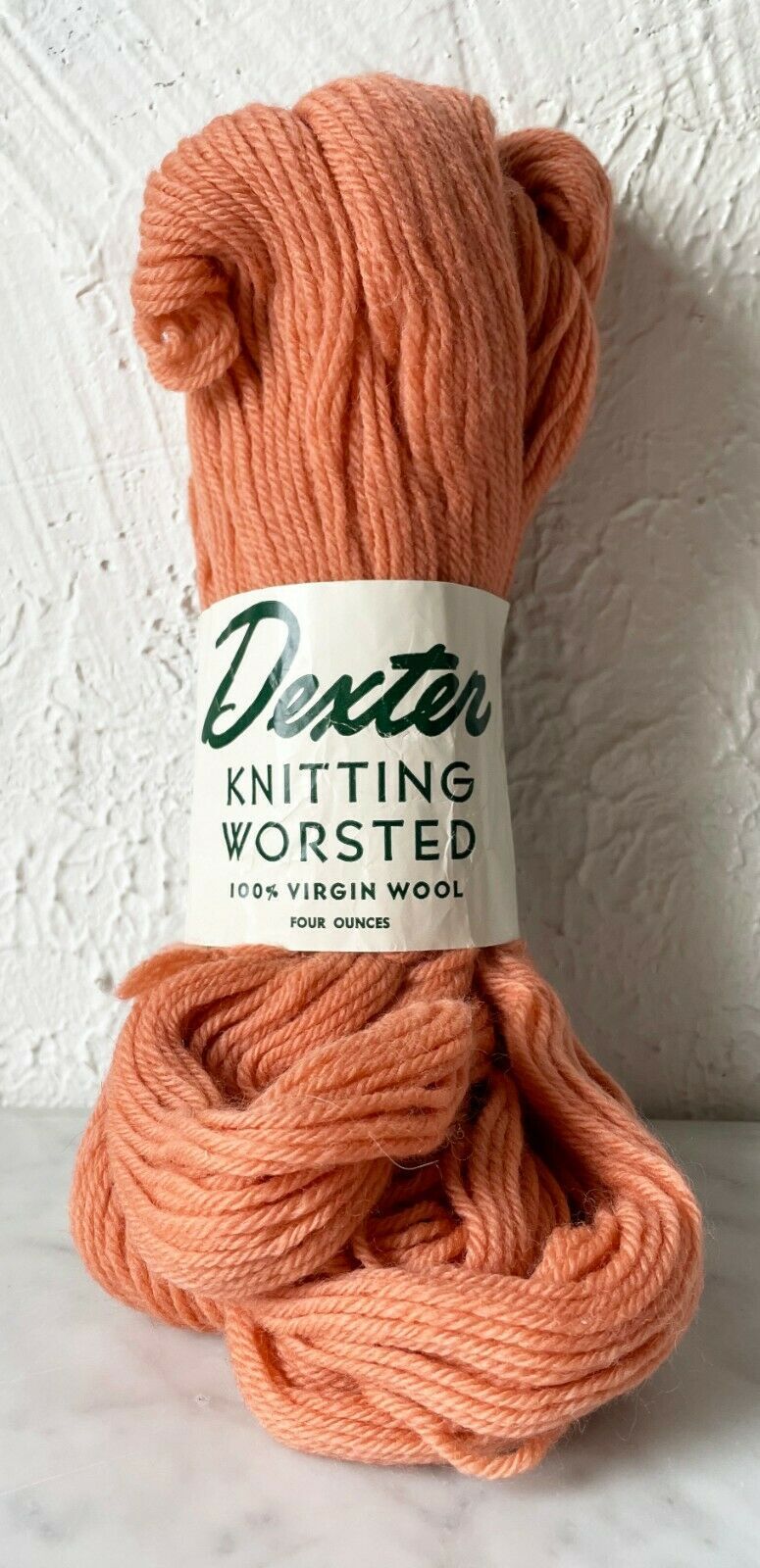 One skein of vintage Dexter Knitting Worsted yarn. Color Salmon #1044. 100% Virgin Wool. Made in USA.
