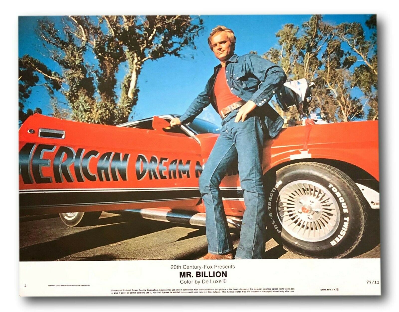 Looking for the next great piece to add to your memorabilia collection? Well, this is it! " Mr. Billion rdquo; Starring: Terence Hill, Valerie Perrine, Jackie Gleason, Slim Pickens, William Redfield, Chill Wills Copyright Year / Dated: 1977 11" X 14" in size Not a bootleg or reproduction - GUARANTEED Original movie studio production theatrical lobby card used in a movie theater around time of release of the movie. Condition: Poster is in -vintage condition- and of investment quality. This original lobby card was used at a movie theater. It may or may not have staple marks at corners, wrinkling, slight tears around edges, rounded corners, etc. From being originally displayed at a movie theater or overtime natural wear. Colors and detail are outstanding for this day amp; age, photos may not completely pick up high quality of coloring and inks until you see in hand. Please make your personal assessment of the condition of this poster from the photos provided in the listing. The above condition issues are not exact for this poster, so please take a look at the photos to determine the condition. We ship our items very protected and secure to make sure this item makes it to you safely!!