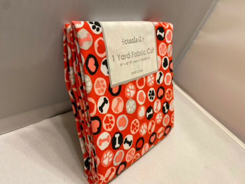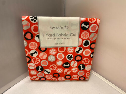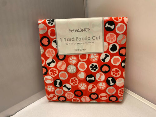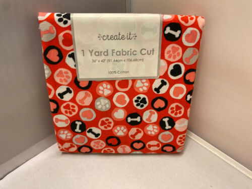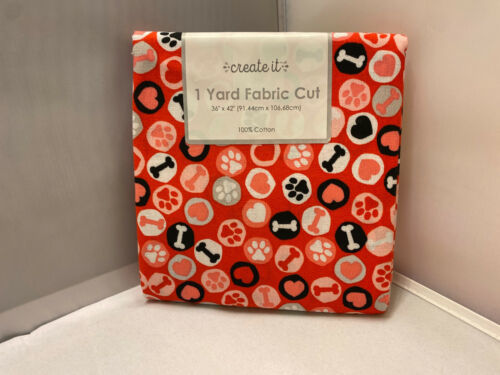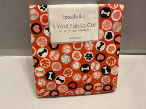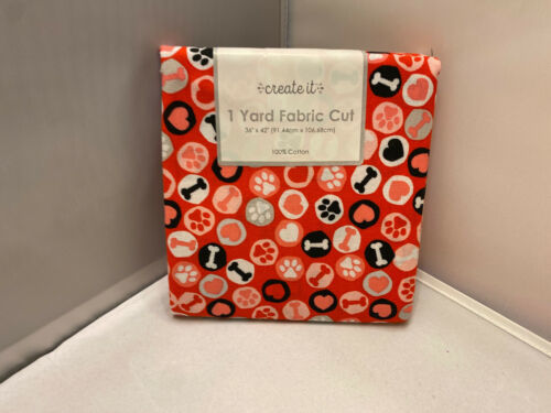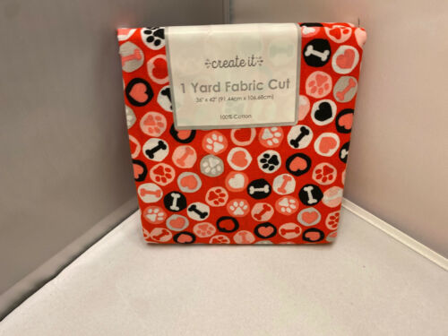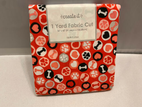 Create It Fabric Cut 1 Yard Dog Pet Puppy Paw Hearts