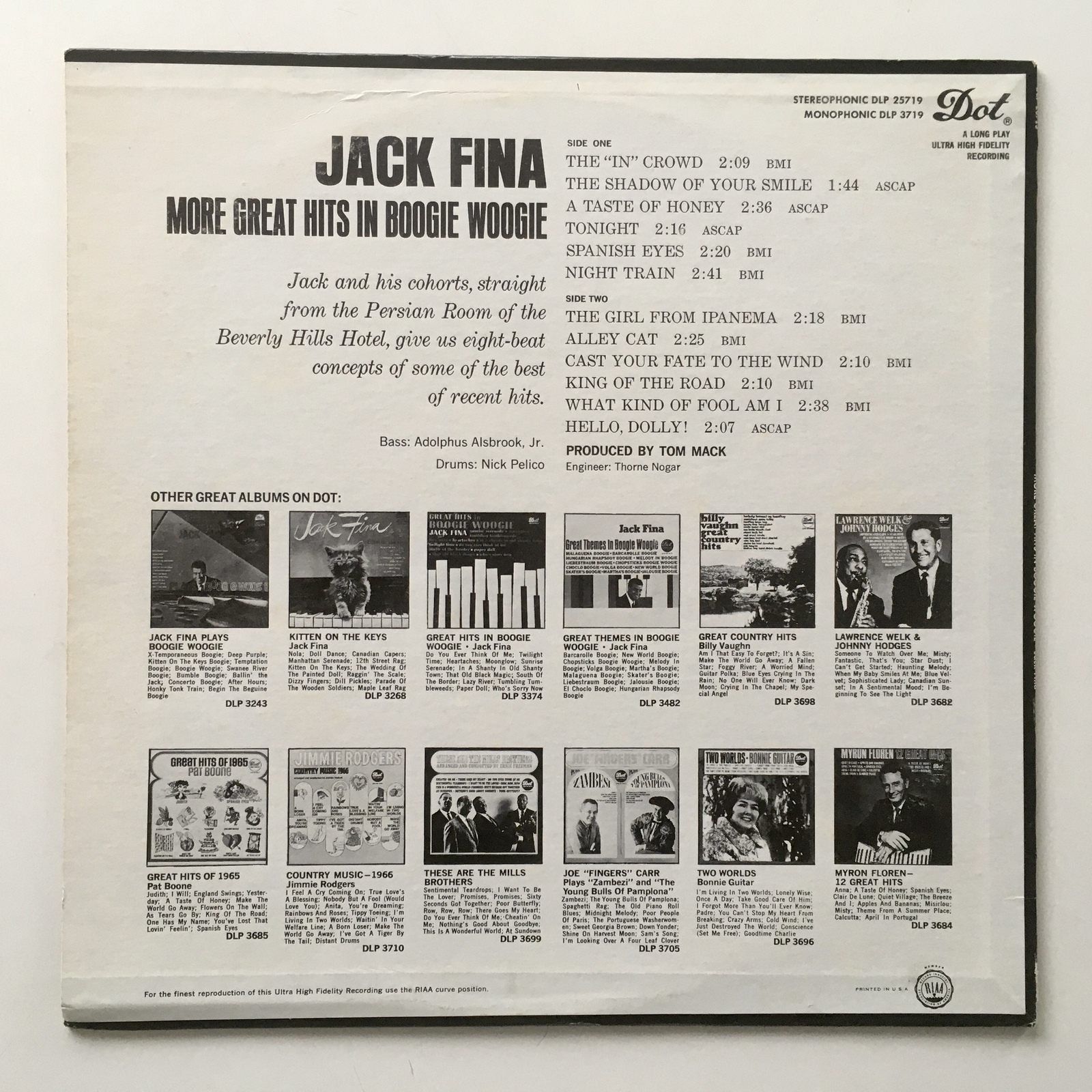 Jack Fina - More Great Hits in Boogie Woogie LP Vinyl Record Album