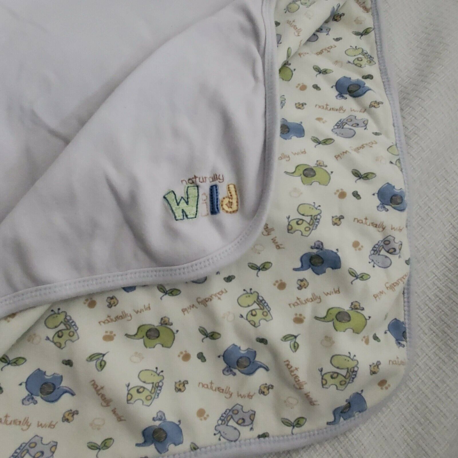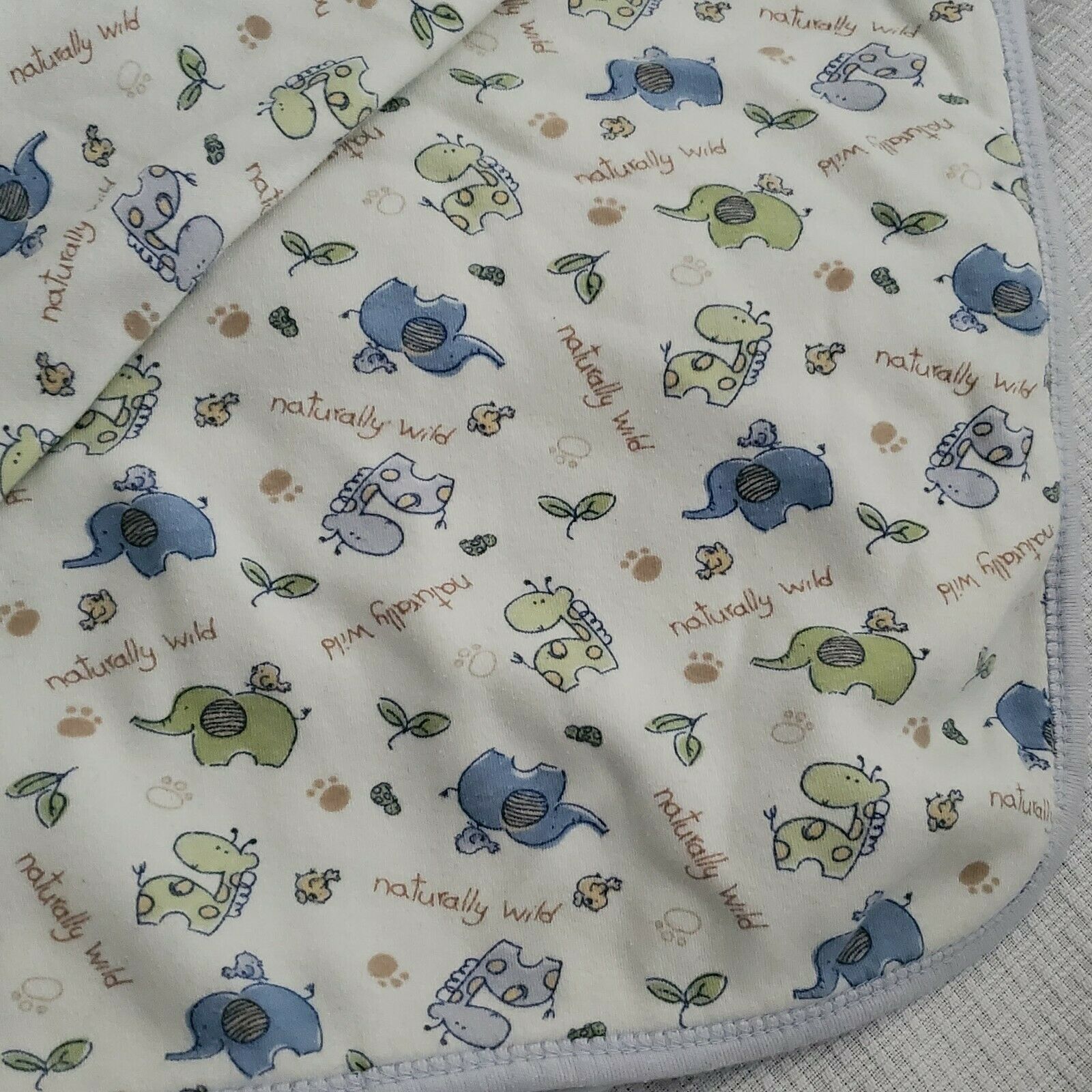 Gerber Naturally Wild Baby Boy Blanket White Blue Jungle Safari Zoo Animal Bird