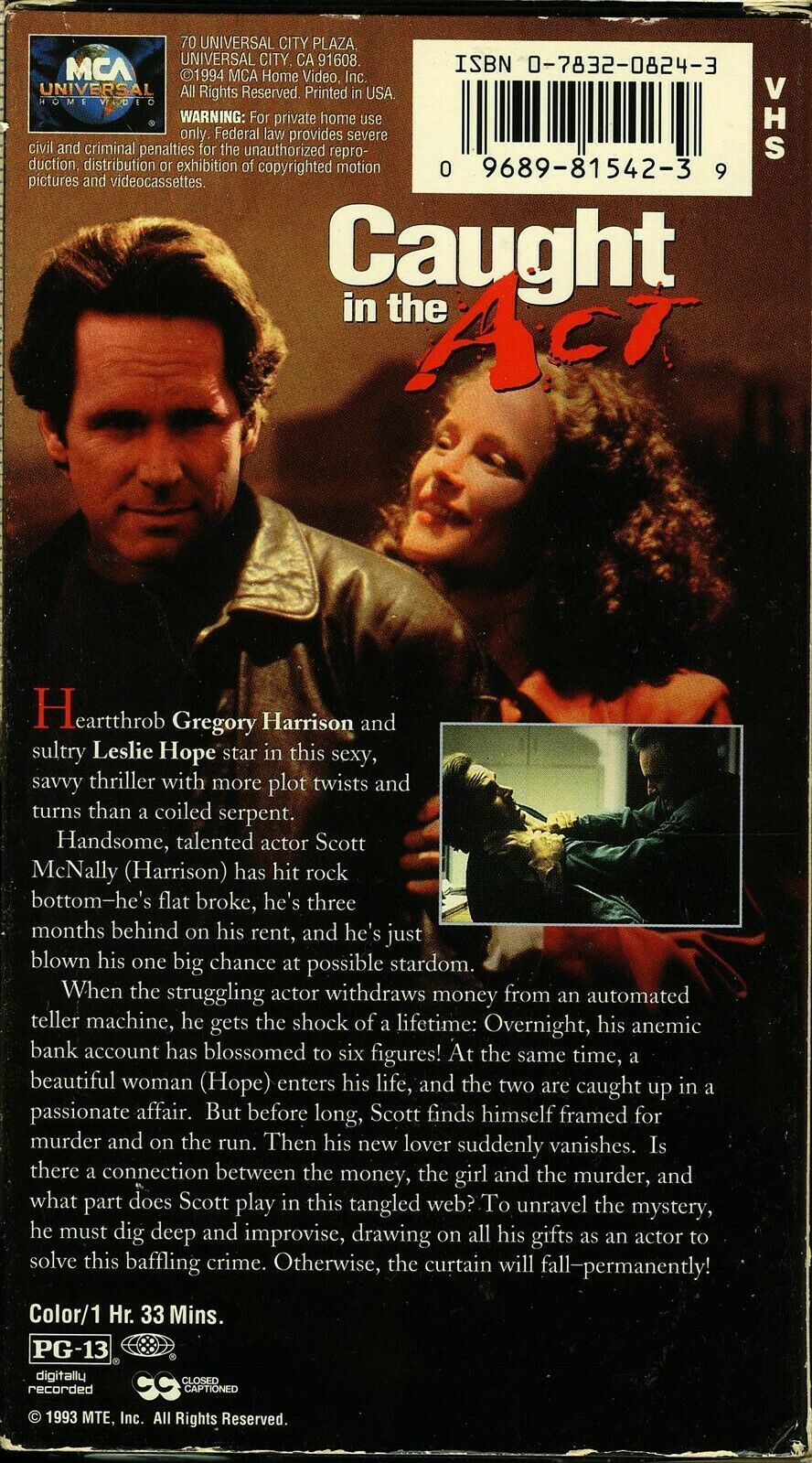 CAUGHT IN THE ACT VHS LESLIE HOPE PATRICIS CLARKSON MCA VIDEO TESTED