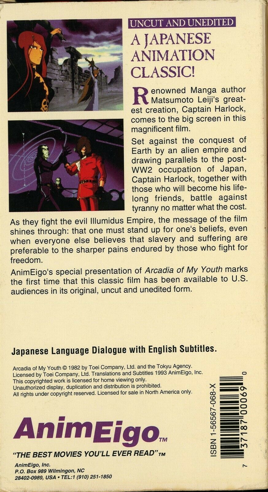This is a previously viewed VHS TAPE of the rare Japanese Animation classics ARCADIA OF MY YOUTH (Waga seishun no Arcadia (original title)), English subtitles, starring the voice talents of