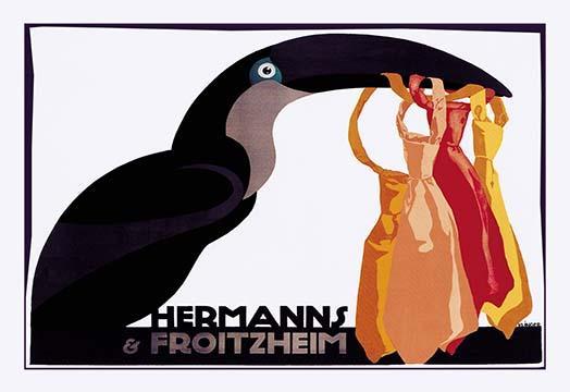 12inch x 18inch Poster Julius Klinger (May 22, 1876 ? 1942) was an Austrian Painter, draftsman, illustrator, commercial graphic artist, typographer and writer. Klinger studied at the Technologisches Gewerbemuseum in Vienna. Klinger's mother was a well-known Vienna clothing artist. He did many advertising posters in the fashion industry. This clothing store ad with a toucan and tie was likely for a Jewish business that was seized by the Nazis. Klinger was killed after it was discovered he was a member of the Austrian resistance in WWII. There is a border around the image. The image size is correct.