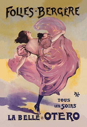 12inch x 18inch Poster The Folies Bergère is a cabaret music hall, located in Paris, France. Established in 1869, the house was at the height of its fame and popularity from the 1890s' Belle Époque through the 1920s' Années folles. Caroline Otero was one of the Folies-Bergère s most important stars during the 1890 s. Jean de Paleologu (or Paleologue) (1855 ? 24 November 1942) was a Romanian poster artist, painter, and illustrator, who often used Pal or PAL as his signature or logo and was active in France and the United States. There is a border around the image. The image size is correct.