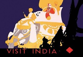 12inch x 18inch Poster A travel poster for India featuring beautifully adorned elephants carrying Indian noblemen. Tom Purvis (12 June 1888 ? 27 August 1959) was a British painter and commercial poster artist. There is a border around the image. The image size is correct.