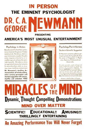 12inch x 18inch Poster In person the eminent psychologist, Dr. C.A. George Newmann presenting America's most unusual entertainment miracles of the mind There is a border around the image. The image size is correct.