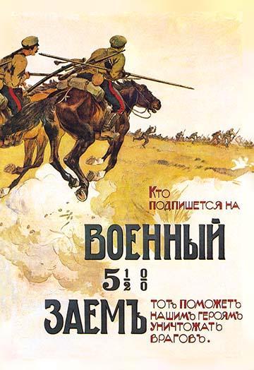 12inch x 18inch Poster WWI Russian propaganda and fundraising poster showing cavalry officers charging the enemy on horseback. The poster also recalls the Battle of Galicia, also known as the Battle of Lemberg, was a major battle between Russia and Austria-Hungary during the early stages of World War I in 1914. In the course of the battle, the Austro-Hungarian armies were severely defeated and forced out of Galicia, while the Russians captured Lemberg and, for approximately nine months, ruled Eastern Galicia. Art by Ivan A. Vladimirov (29 November 1869; Vilnius, Lithuania - 14 December 1947; Saint Petersburg, Russian Federation) There is a border around the image. The image size is correct.