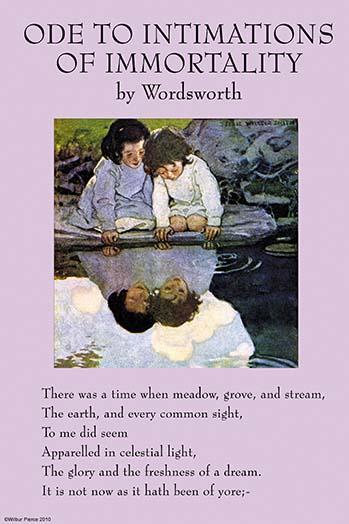 12inch x 18inch Poster Ode: Intimations of Immortality from Recollections of Early Childhood (also known as Ode, Immortality Ode or Great Ode) The poem is an irregular Pindaric ode in 11 stanzas that combines aspects of Coleridge's Conversation poems, the religious sentiments of the Bible and the works of Saint Augustine, and aspects of the elegiac and apocalyptic traditions. It is split into three movements: the first of 4 stanzas discusses concerns about lost vision, the second of 4 stanzas describes how age causes man to lose sight of the divine, and the third of 3 stanzas is hopeful in that the memory of the divine allows us to sympathize with our fellow man. The poem relies on the concept of pre-existence, the idea that the soul existed before the body, to connect children with the ability to witness the divine within nature. As children mature, they become more worldly and lose this divine vision, and the ode reveals Wordsworth's understanding of psychological development that is also found in his poems The Prelude and Tintern Abbey. Wordsworth's praise of children as the "best philosopher" was criticized by Coleridge and became the source of later critical discussion. - There is a border around the image. Image size is correct.