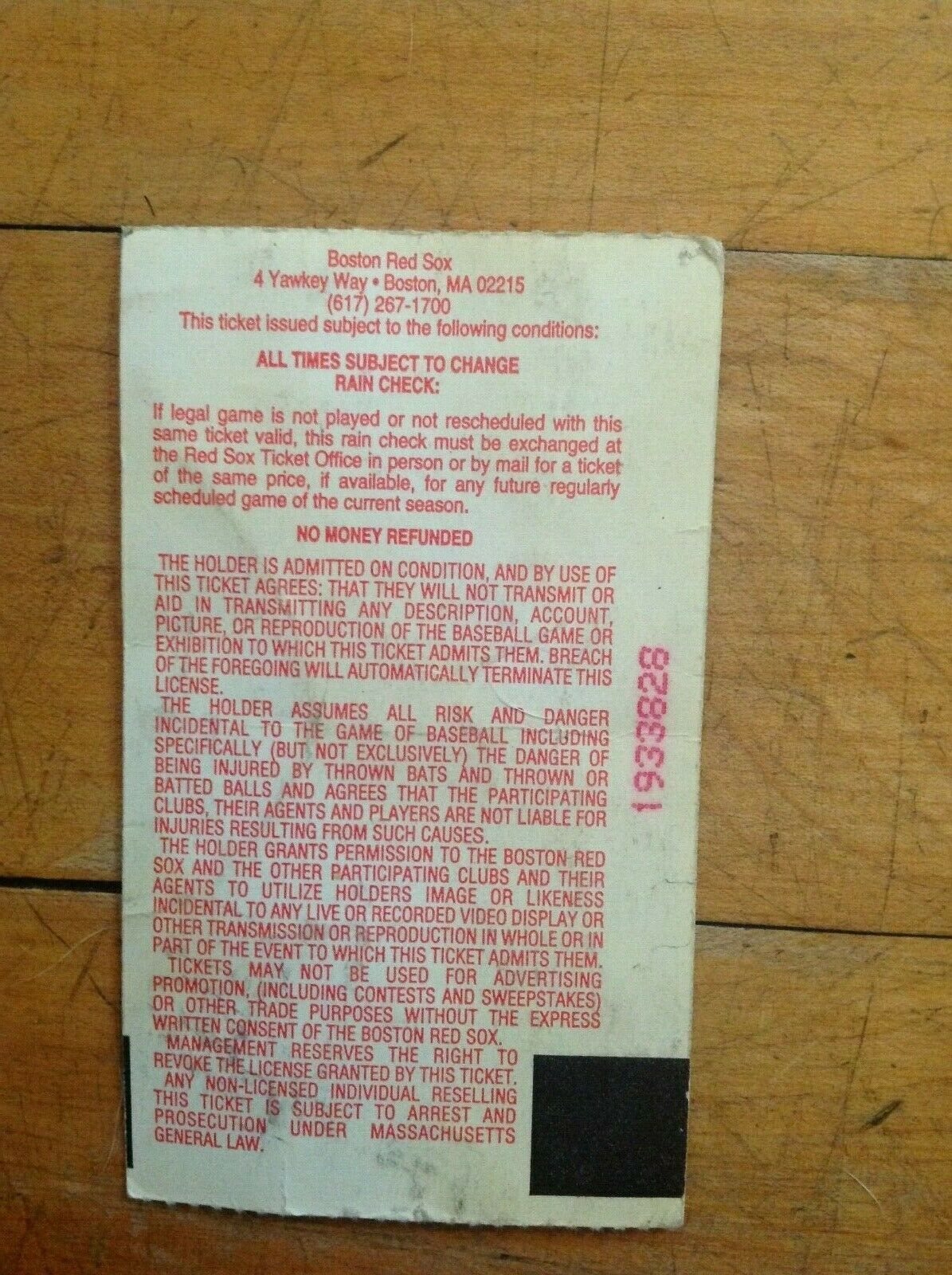 1999 Boston Red Sox Ticket Stub At Fenway and 50 similar items