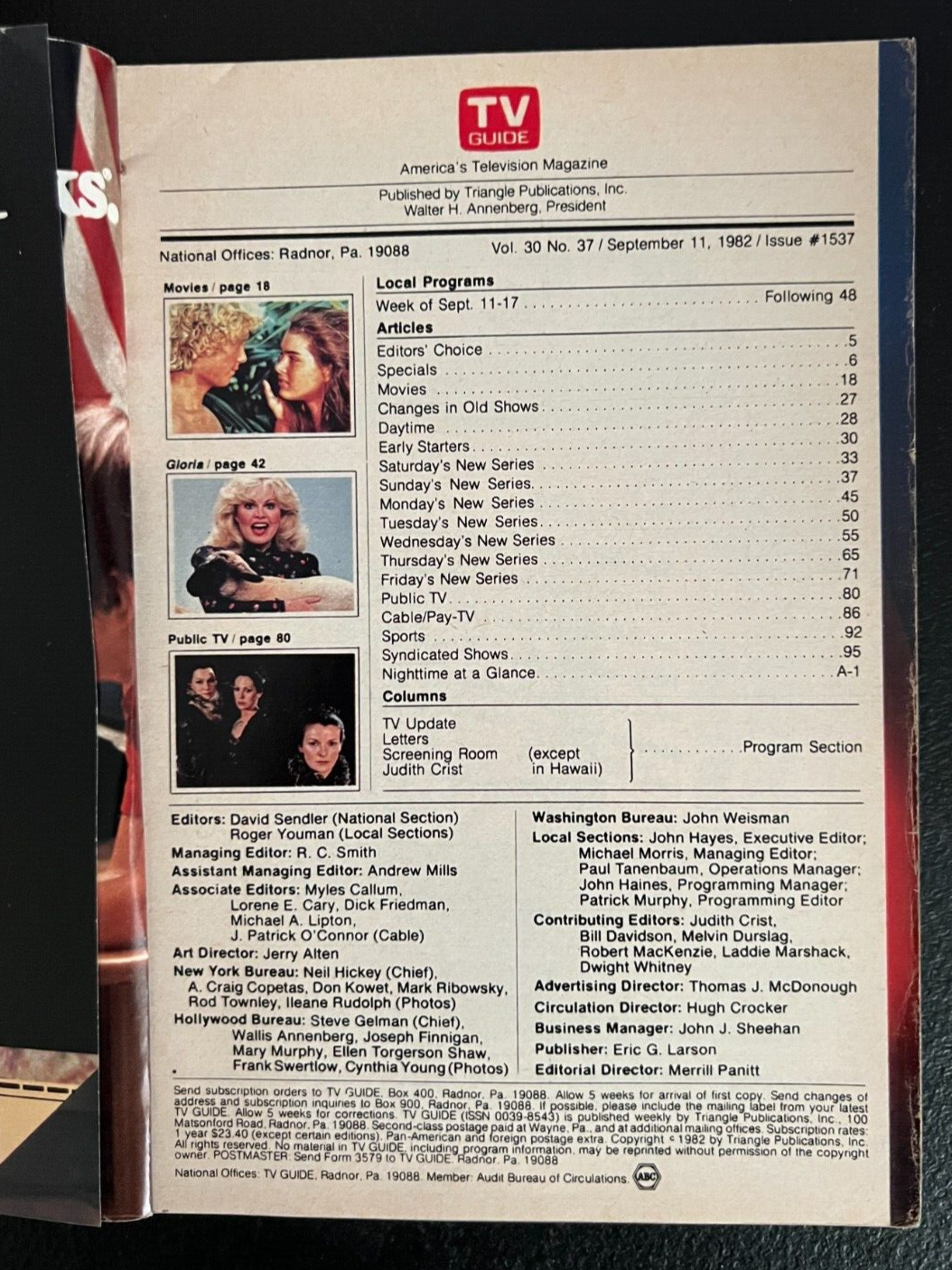 TV Guide magazine Fall Preview 9/11 to 9/17/1982