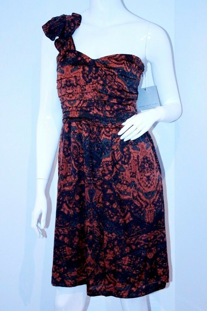 ANDREW MARC New York MD1E9308 Garnet Black RUFFLED Sleeve DRESS Paisley ( 4 )