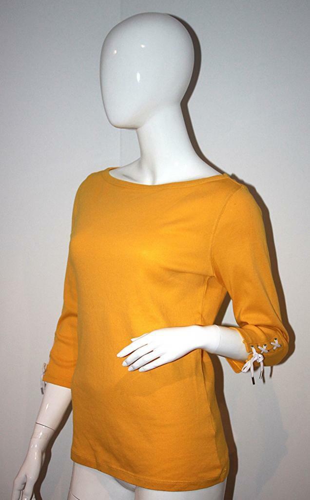 LRL Lauren Jeans Co. RALPH LAUREN Yellow MARIGOLD Top DRAWSTRING Sleeves ( S )