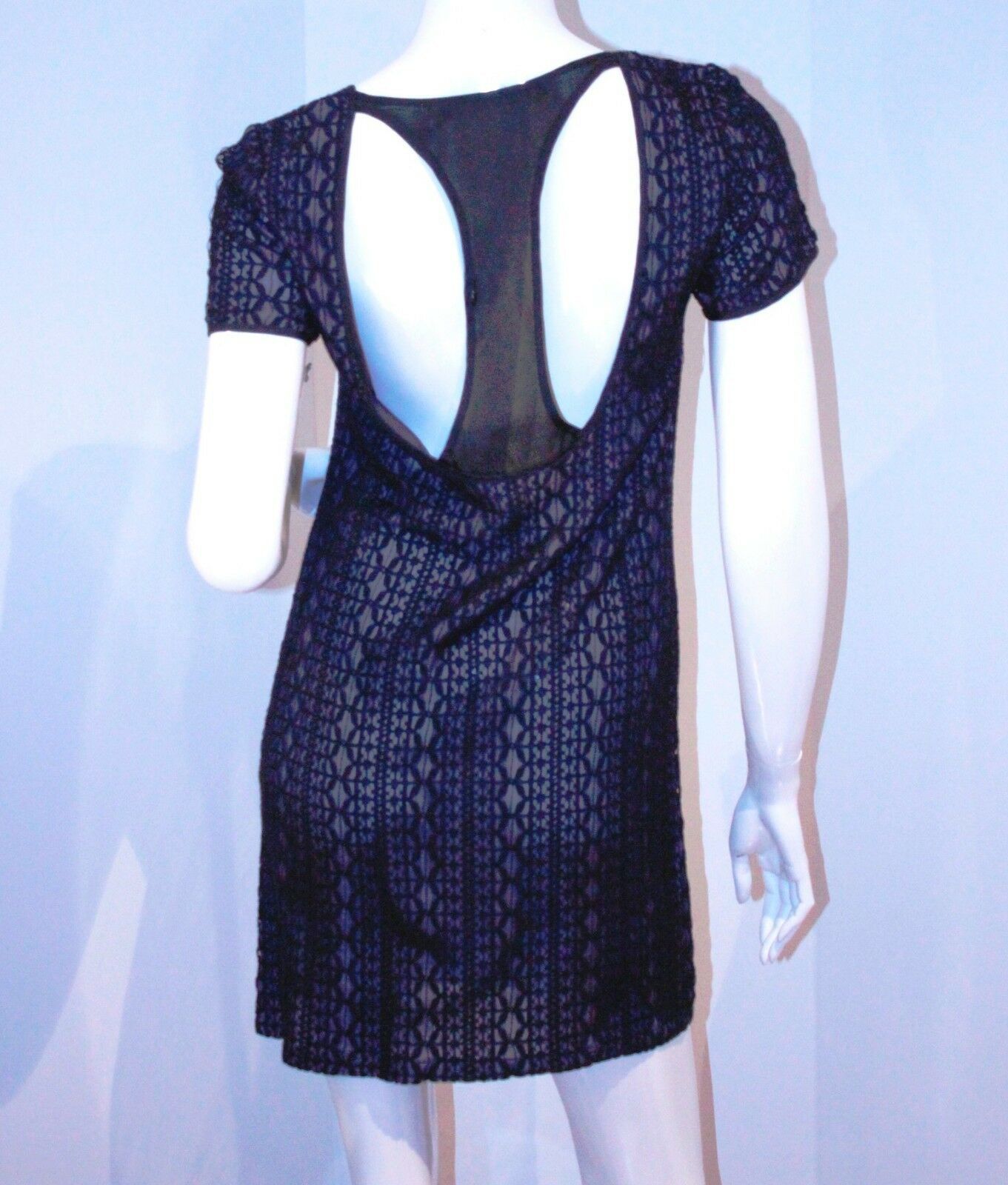 $220 ANDREW MARC New York RACERBACK Lace DRESS Purple BLACK Silk Lining ( 0 )