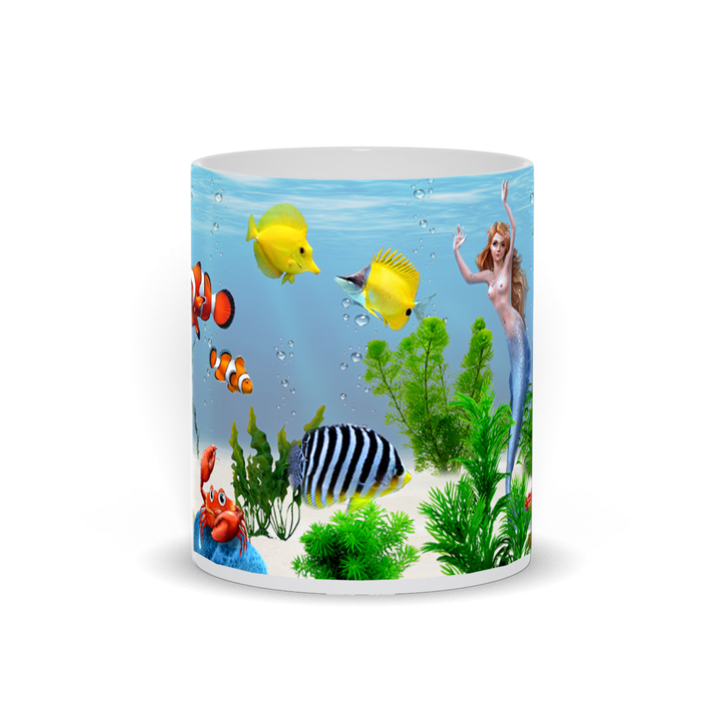 Universal mermaid ceramic cup for all drinks: milk, tea, coffee, latte, cappuccino and other hot and cold drinks.