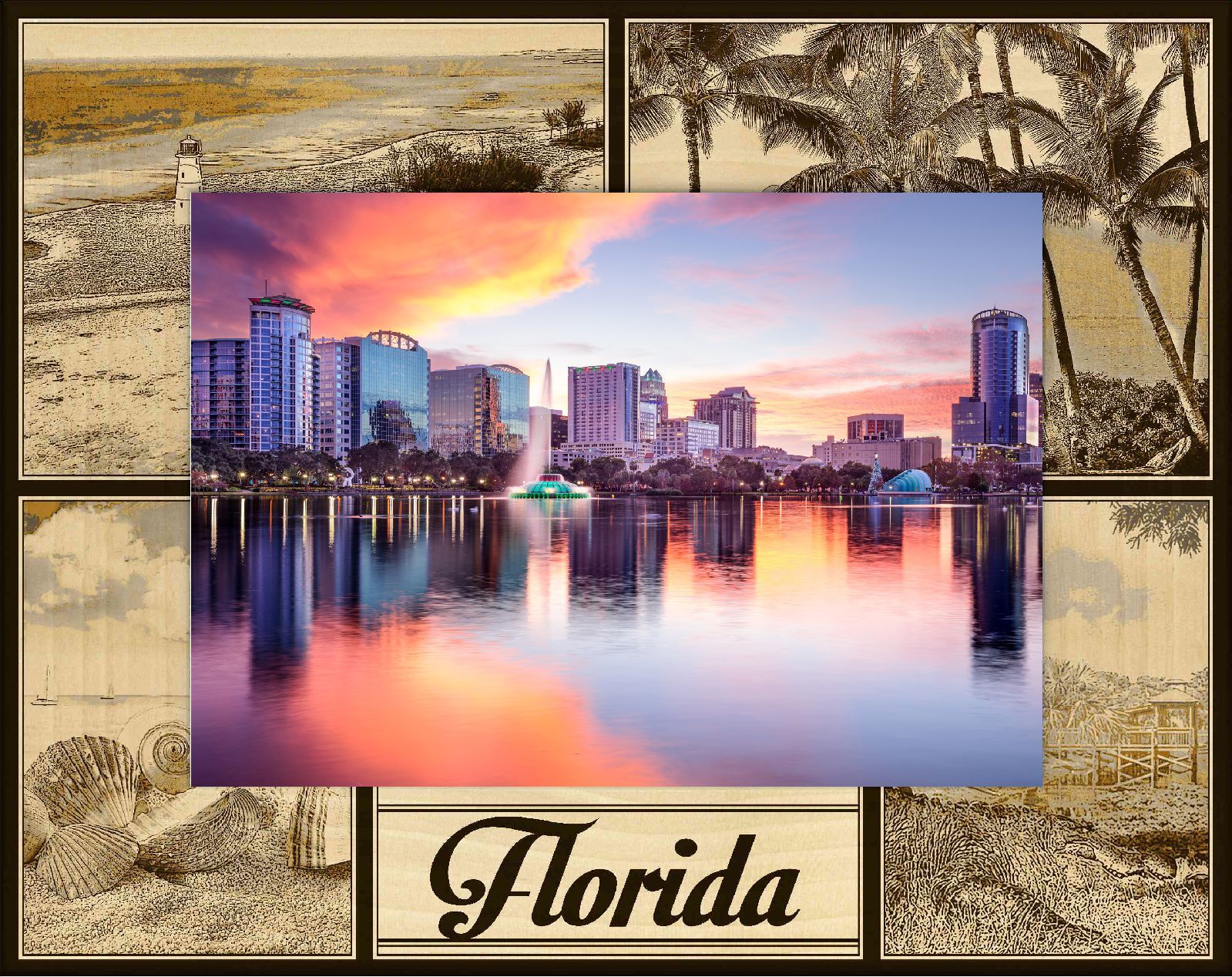 Florida Laser Engraved Wood Picture Frame Landscape (8 x 10)