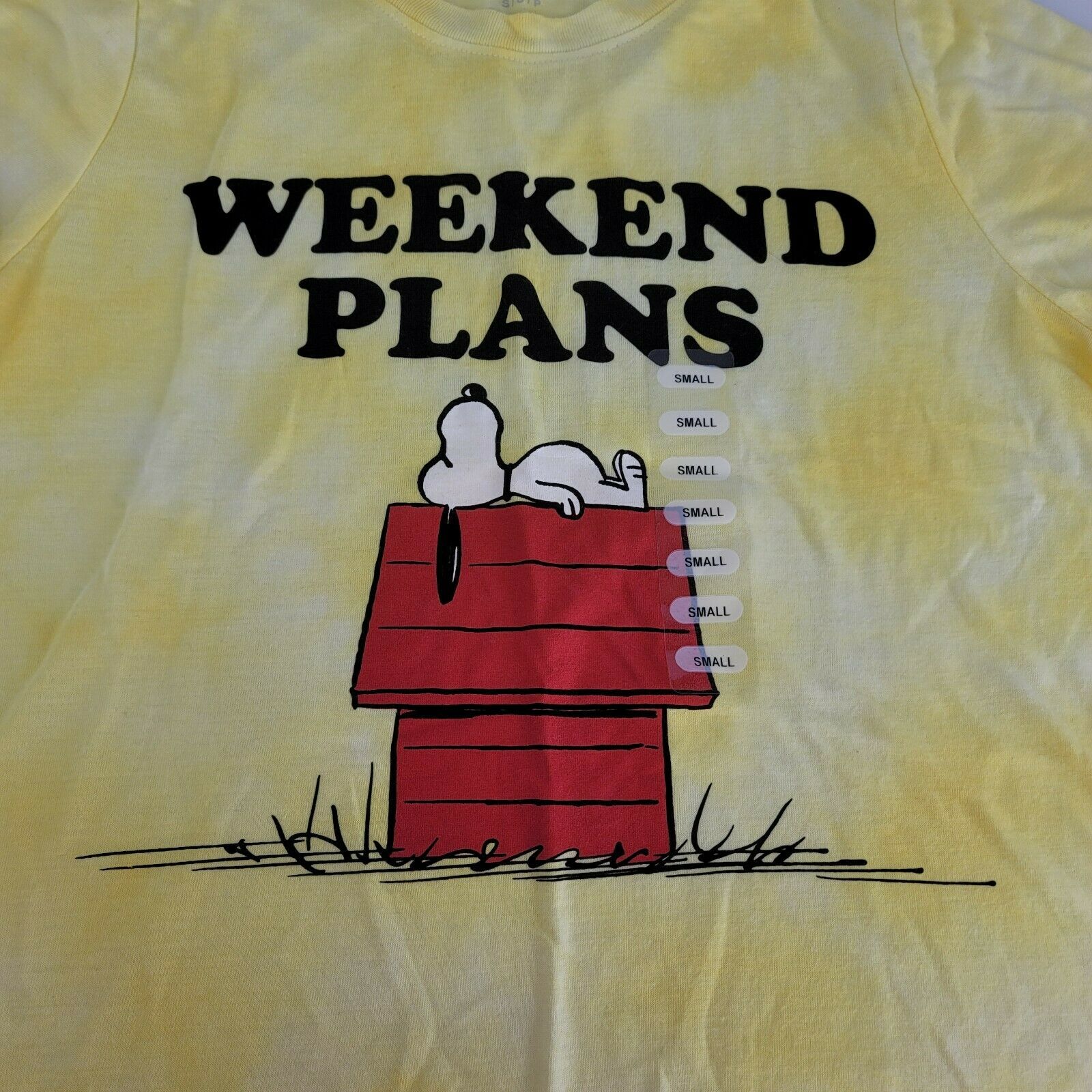 Peanuts Snoopy Yellow Tie Dye T Tee Shirt Weekend Plans Nap Doghouse Women S