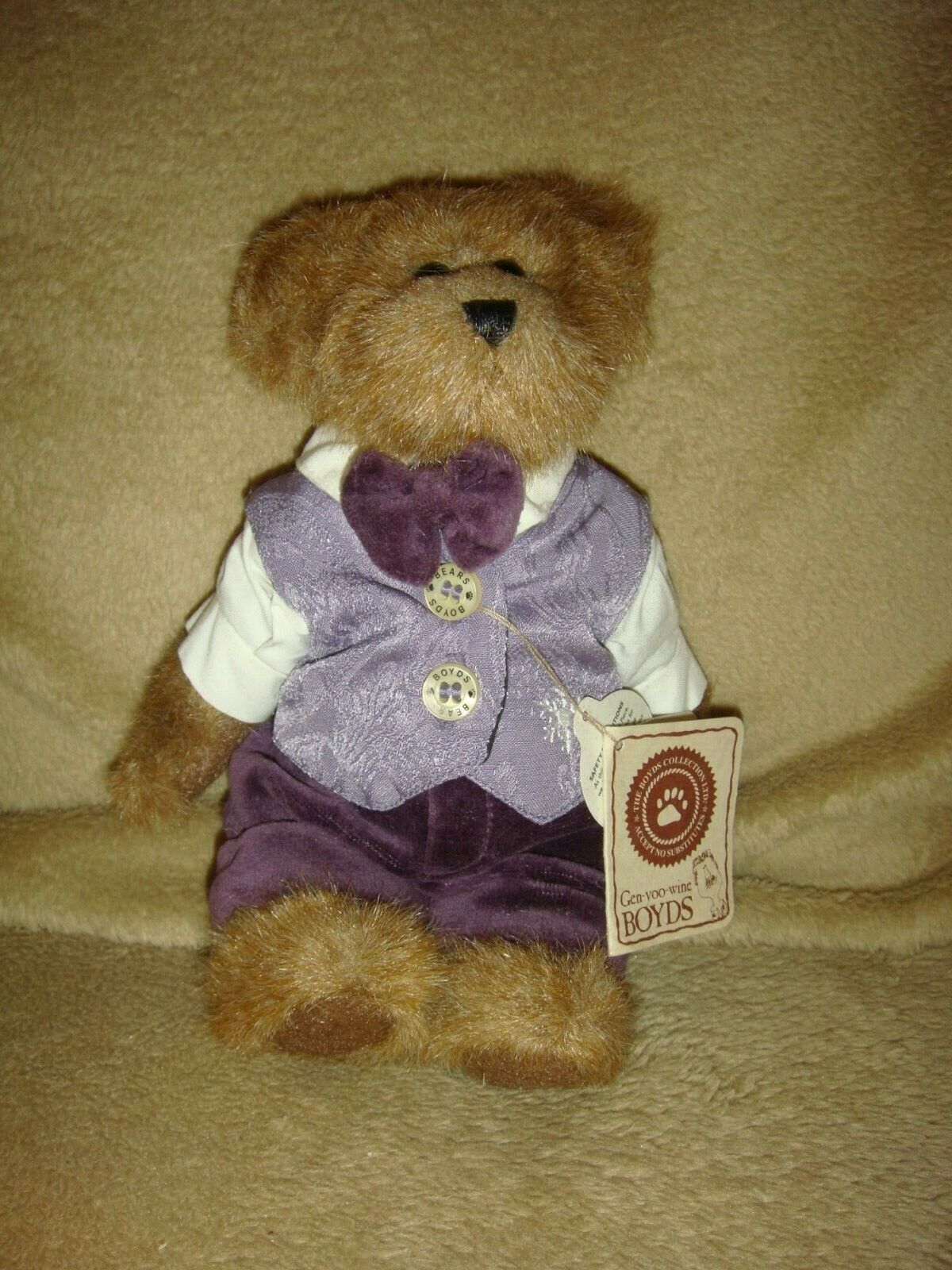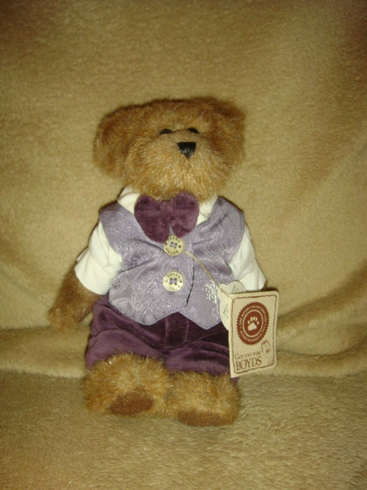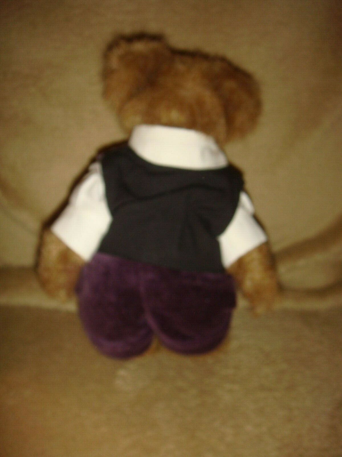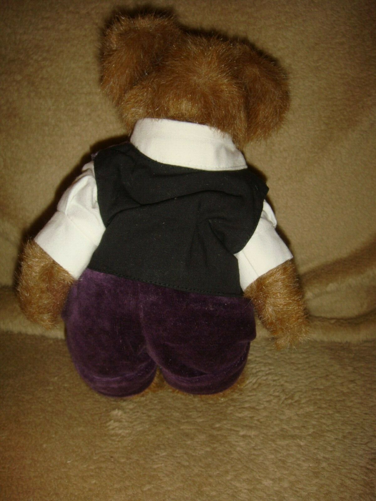 Edmund Is Wearing Purple Velvet Pants And Bow Tie With White Dress Shirt And Lavender Vest (Front), Black (Back) And Snowflake On Vest With Boyds Bears Buttons.
