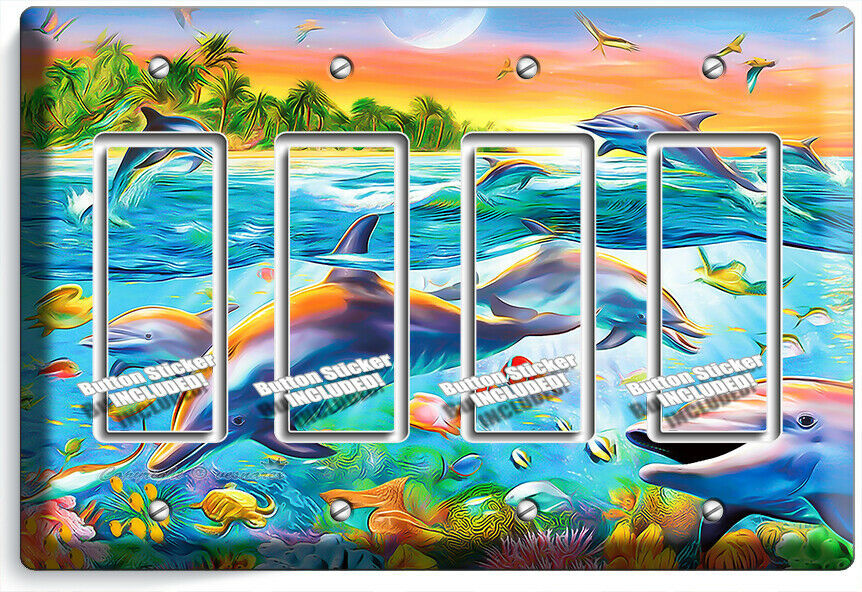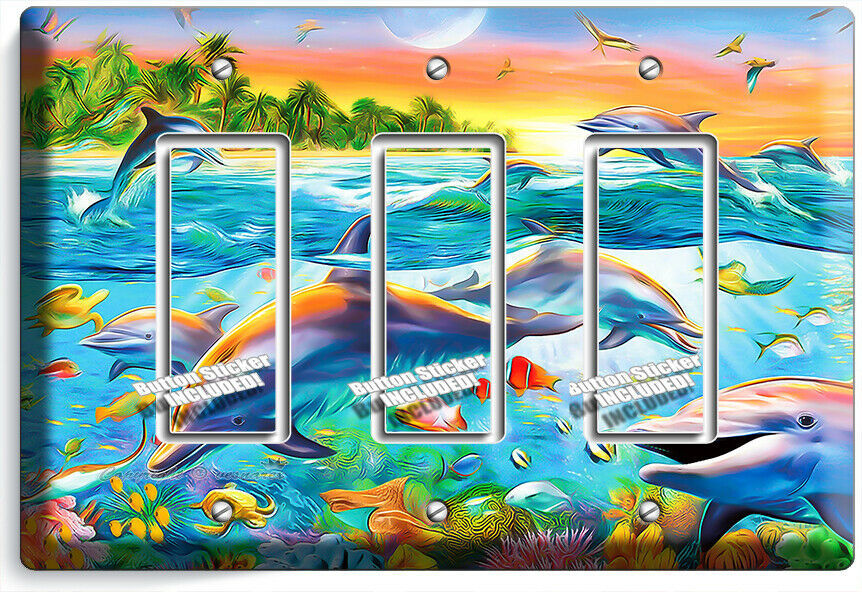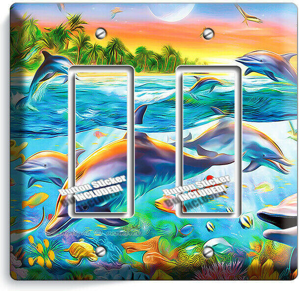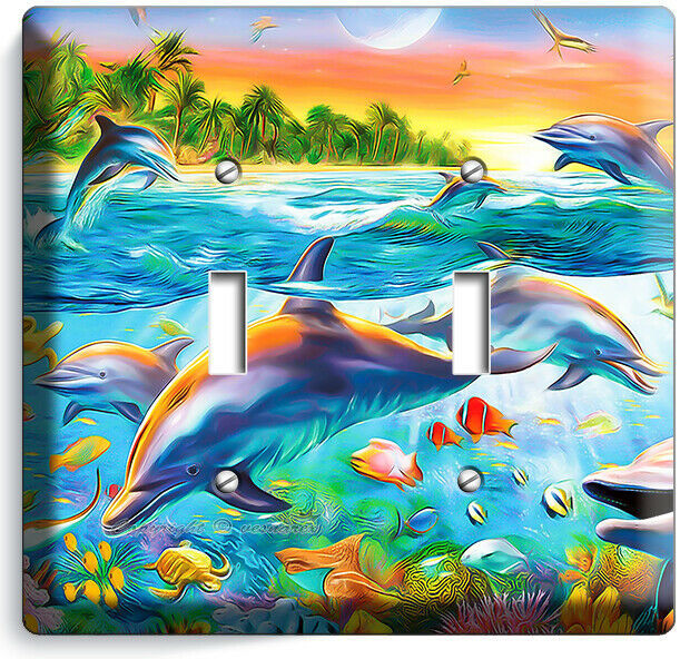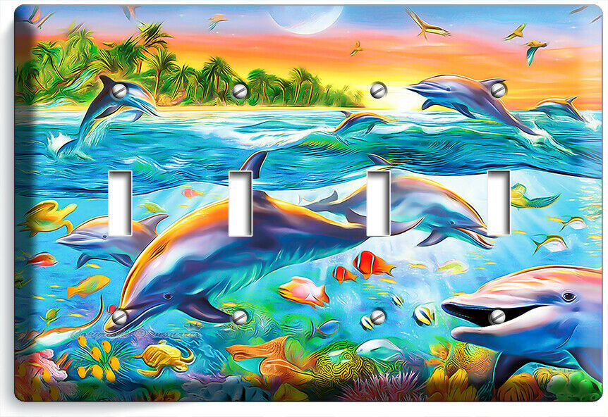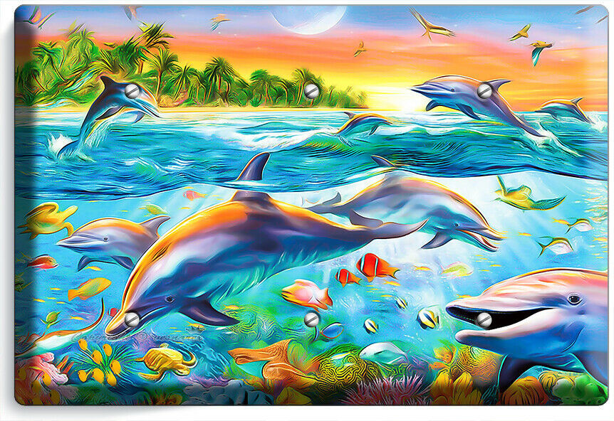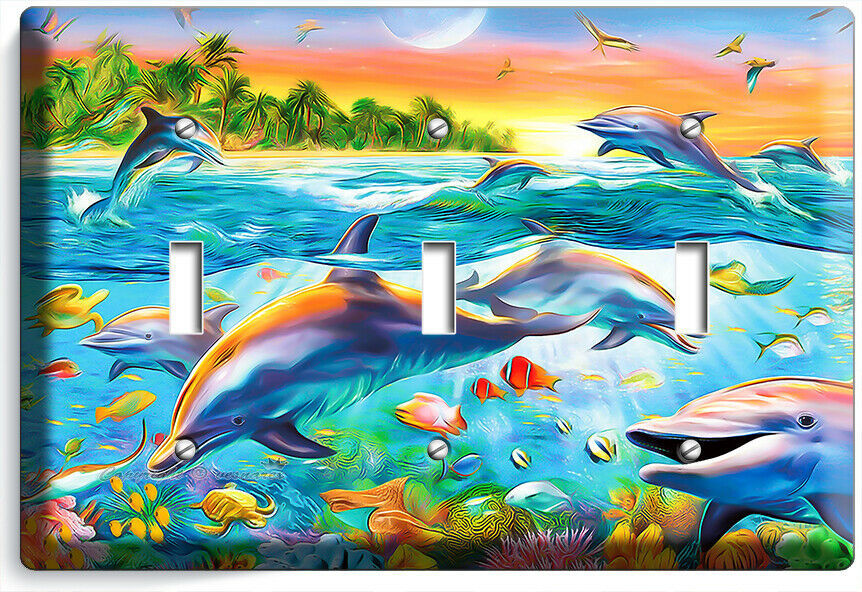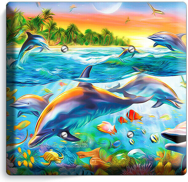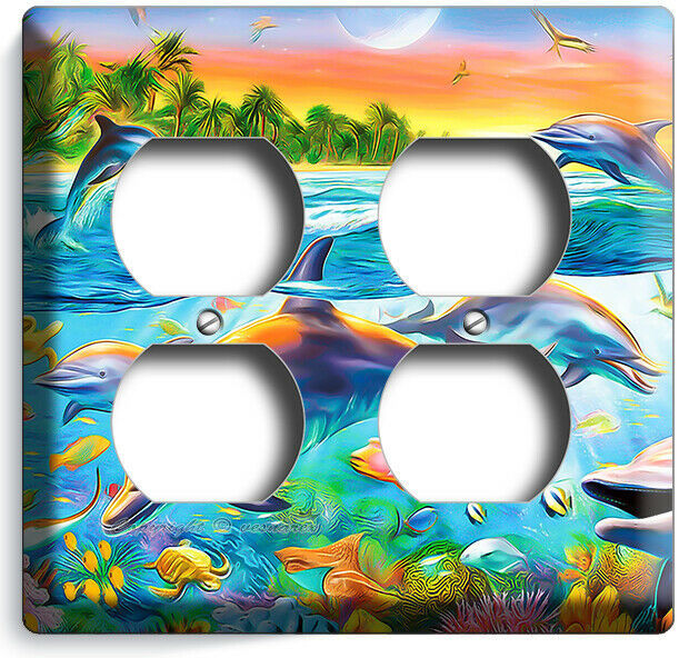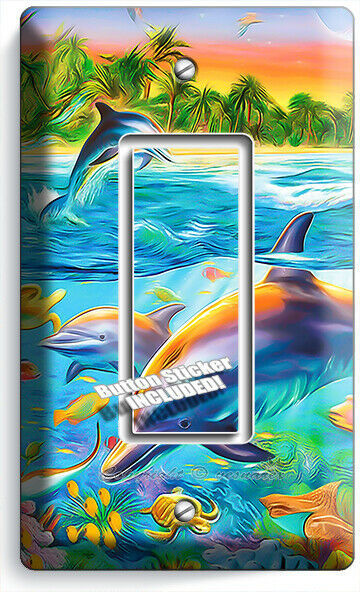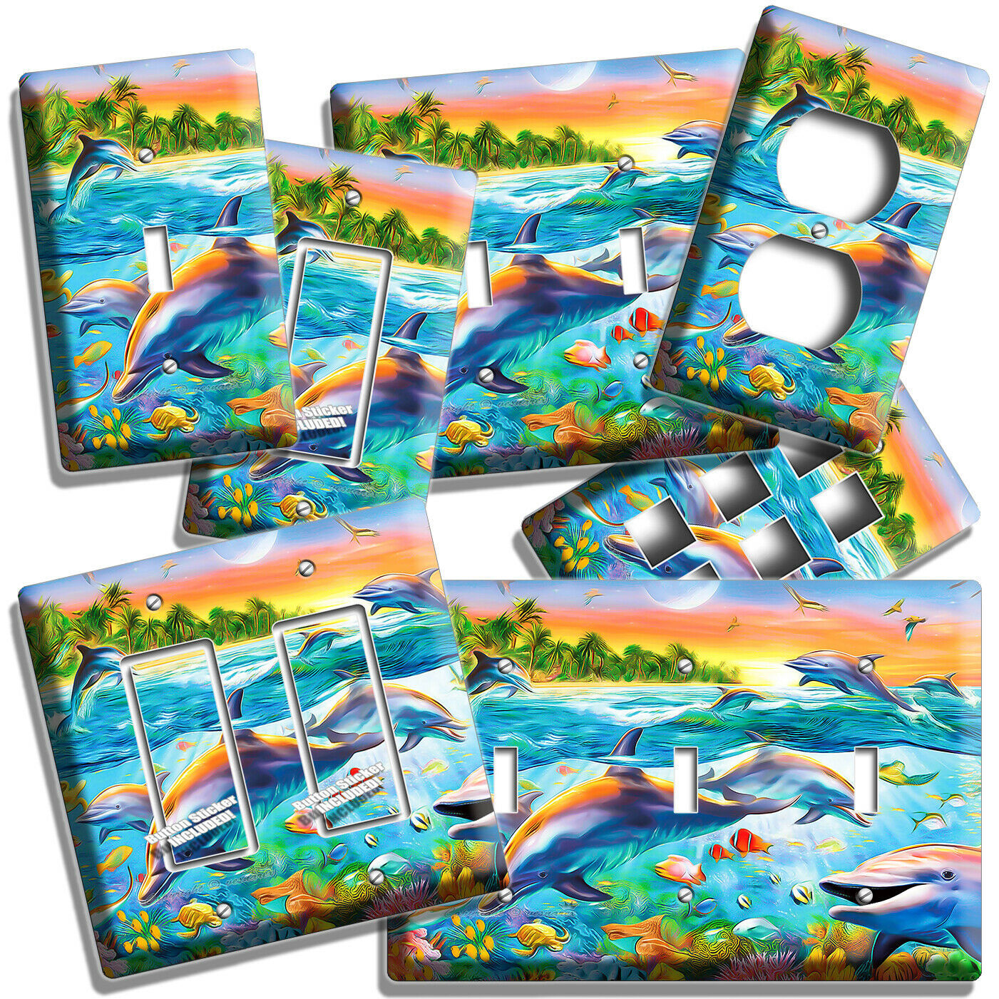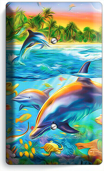 COLORFUL AQUATIC LIFE TROPICAL DOLPHINS LIGHT SWITCH OUTLET WALL PLATE ART DECOR