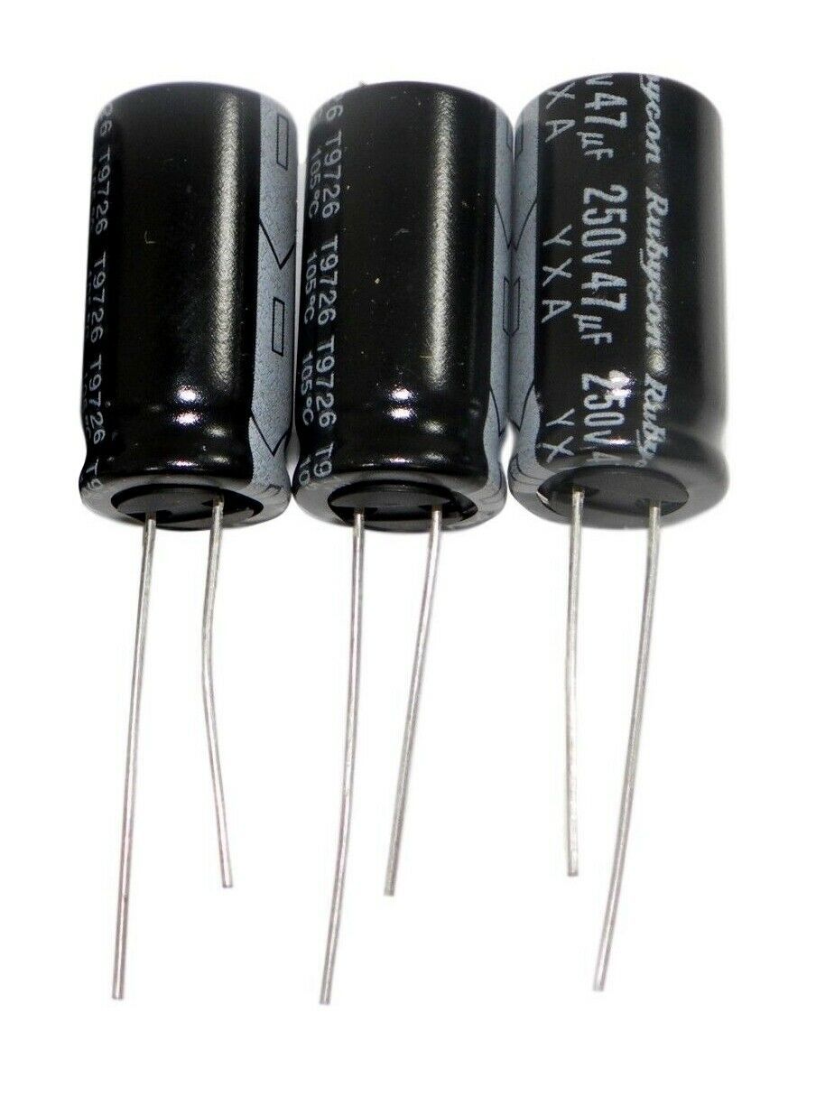 This sale transaction is for a Rubycon T9726 Radial Electrolytic Capacitor 47uF 250V 20% Tolerance 3 Pcs. included exactly what is pictured.
