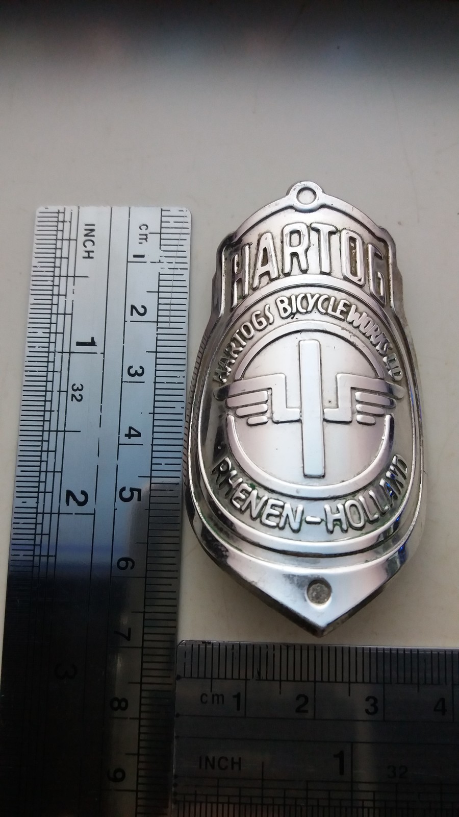 HARTOG Silver aluminum head badge emblem For Hartog vintage bicycle NOS