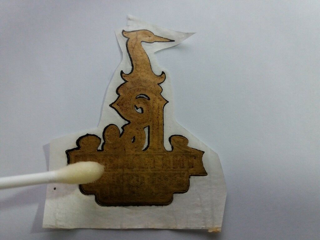 2.Cut the sticker around Logo / Alphabet and then put a little clear spray paint that you put on a small container/plate, using cotton bud
