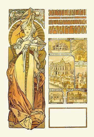 20inch x 30inch Poster Alphonse Maria Mucha (1860 - 1939) was a Czech Art Nouveau painter. However, he did a great many posters and prints. The period of his work has become known as the Belle ??poque. The 1900 Universal Exhibition in Paris distributed the "Mucha style" worldwide, of which Mucha said "I think [the Exposition Universelle made some contribution toward bringing aesthetic values into arts and crafts." He ornamented the Bosnia and Herzegovina Pavilion and collaborated in the Austrian Pavilion. There is a border around the image. The image size is correct.