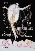 20inch x 30inch Poster Poster for the opera "Bal des Petits lits Blanc." Art by Charles Ges(i)mar (1900-1928), simply known as Gesmar, was one of the greatest designers of costumes and posters during the golden age of the Paris music hall during the Jazz Age and was primarily renowned for his work for the great Parisian star Mistinguett. Although his tenure was short, his output was prolific and his creativity and talent unrivalled. One day in early 1917 in Spinelly??s house, he tried to shoot himself after an altercation with the actress but the bullet went into the lavatory cistern and flooded the house instead. Spinelly was not amused and their relationship ended. There is a border around the image. The image size is correct.