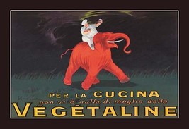 20inch x 30inch Poster A chef rides a large red elephant on a field of grass. The V??g??taline is a trademark designating (often generically) a cooking fat consisting of coconut oil, hydrogenated and palm oil. Leonetto Cappiello (9. April 1875 in Livorno, Italy ?? 2. February 1942 in Cannes, France) was an Italian and French poster art designer who lived in Paris. He is now often called 'the father of modern advertising' because of his innovation in poster design. There is a border around the image. The image size is correct.