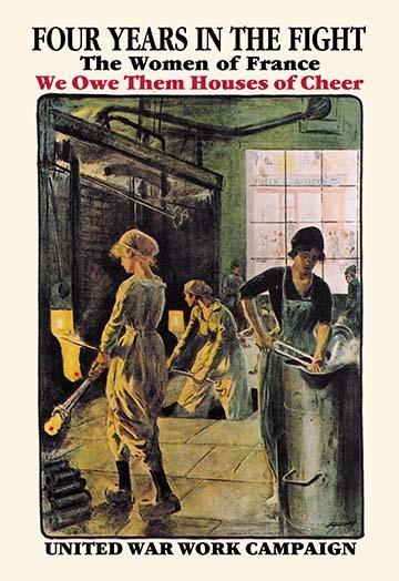 20inch x 30inch Poster Four years in the fight. The women of France, we owe them houses of cheer. United War Work Campaign. Y.W.C.A. There is a border around the image. The image size is correct.