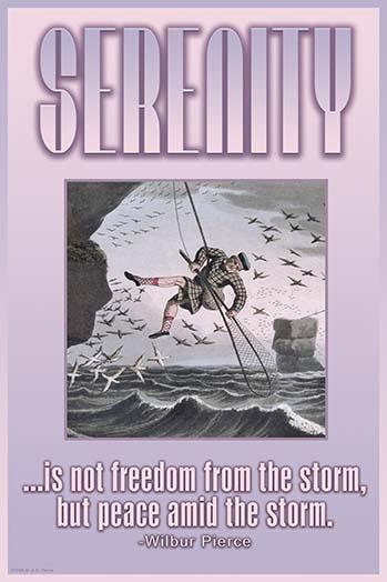 20inch x 30inch Poster Serenity of not freedom from the storm, but peace amid the storm. There is a border around the image. The image size is correct.