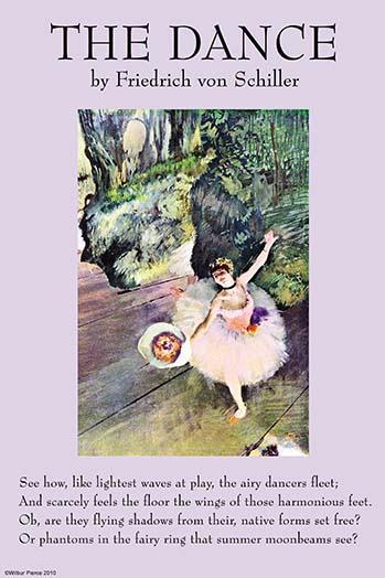 20inch x 30inch Poster Johann Christoph Friedrich von Schiller 1759 ???? 1805) was a German poet, philosopher, historian, and playwright. During the last seventeen years of his life (1788??1805), Schiller struck up a productive, if complicated, friendship with already famous and influential Johann Wolfgang Goethe. They frequently discussed issues concerning aesthetics, and Schiller encouraged Goethe to finish works he left as sketches. This relationship and these discussions led to a period now referred to as Weimar Classicism. They also worked together on Die Xenien, a collection of short satirical poems in which both Schiller and Goethe challenge opponents to their philosophical vision. Poem is illustrated by Degas - There is a border around the image. Image size is correct.