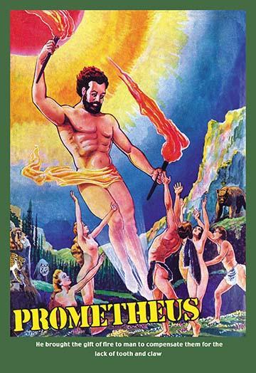 20inch x 30inch Poster Prometheus brings fire down from the Gods to men and women on Earth as compensation for the lack of tooth and claw. Art from the back cover of the pulp magazine Fantastic Adventures, November issue. There is a border around the image. The image size is correct.