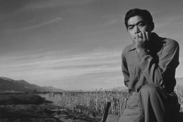 20inch x 30inch Poster Tom Kobayashi, half-length portrait, seated in a field, his elbow resting on his knee and his hand on his chin, facing front. Ansel Easton Adams (1902 ?? 1984) was an American photographer, best known for his black-and-white photographs of the American West. During part of his career, he was hired by the US Government to record life in the West. - There is a border around the image. Image size is correct.