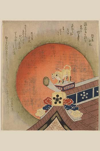 20inch x 30inch Poster Tiger statue on a tile roof. High quality vintage art reproduction. One of many rare and wonderful images brought forward in time. I hope they bring you pleasure each and every time you look at them. - There is a border around the image. Image size is correct.